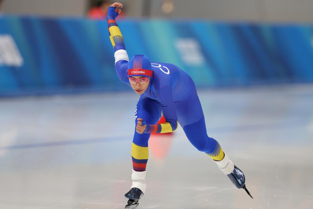 哥伦比亚速滑运动员伊莎贝拉·古铁雷斯在女子1500米比赛中。新华社记者 许雅楠 摄