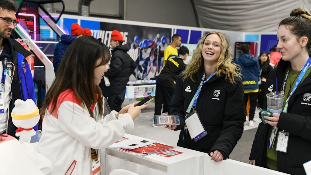 冬青奥村“运动员365”体验区,是运动员们每天进出的必经之地,也是赛会青年参加文化体验活动、结交朋友、彼此换“pin”的聚集地。