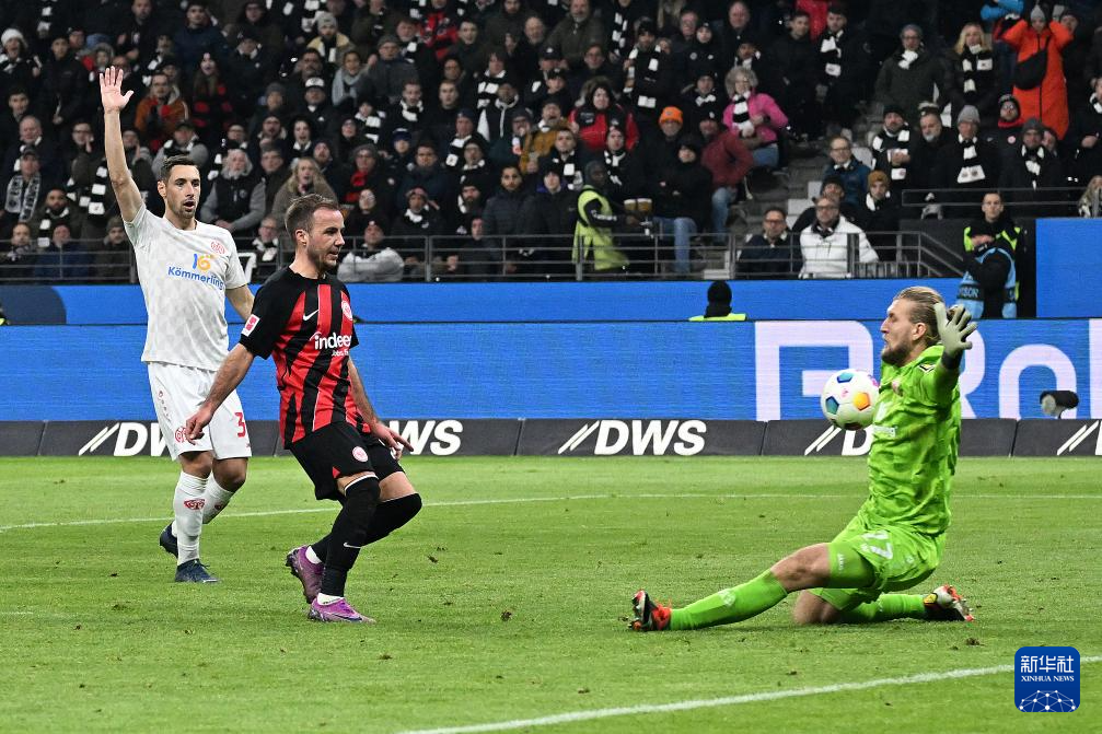 1月26日,法兰克福队球员格策(中)头球得分。新华社发(乌尔里希·胡夫纳格尔 摄)