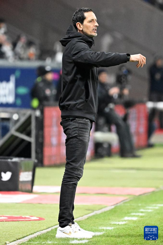 1月26日,法兰克福队主教练托普默勒在场边指导。新华社发(乌尔里希·胡夫纳格尔 摄)