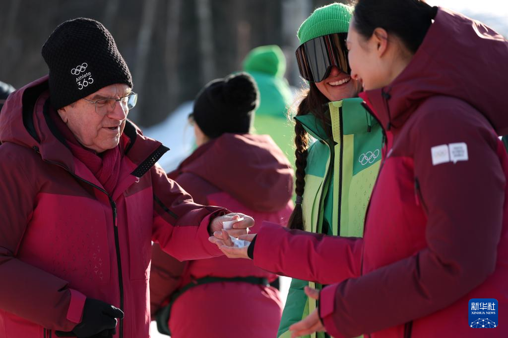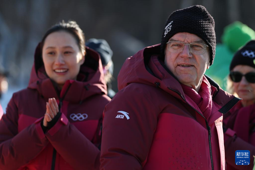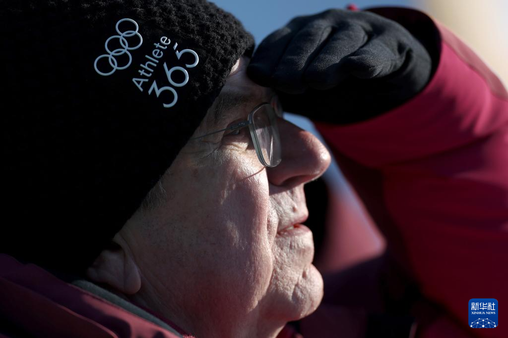 1月28日,国际奥委会主席巴赫关注参赛选手成绩。新华社记者 李明 摄