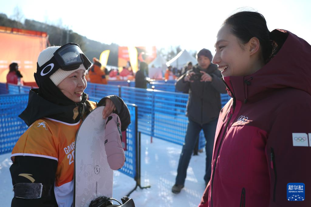 1月28日,国际奥委会江原道冬青奥会协调委员会主席张虹(右)与张小楠在赛后交流。新华社记者 李明 摄