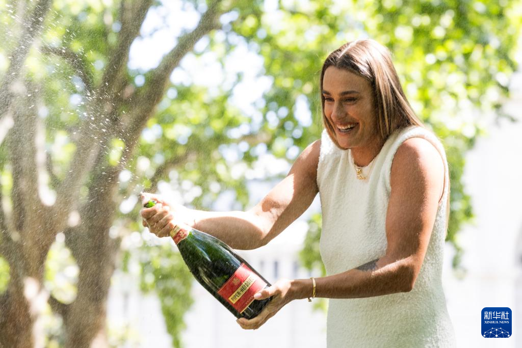 1月28日,萨巴伦卡喷洒香槟,庆祝夺冠。新华社发(储晨摄)