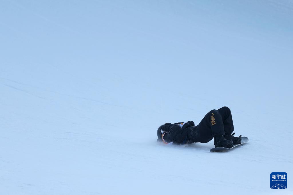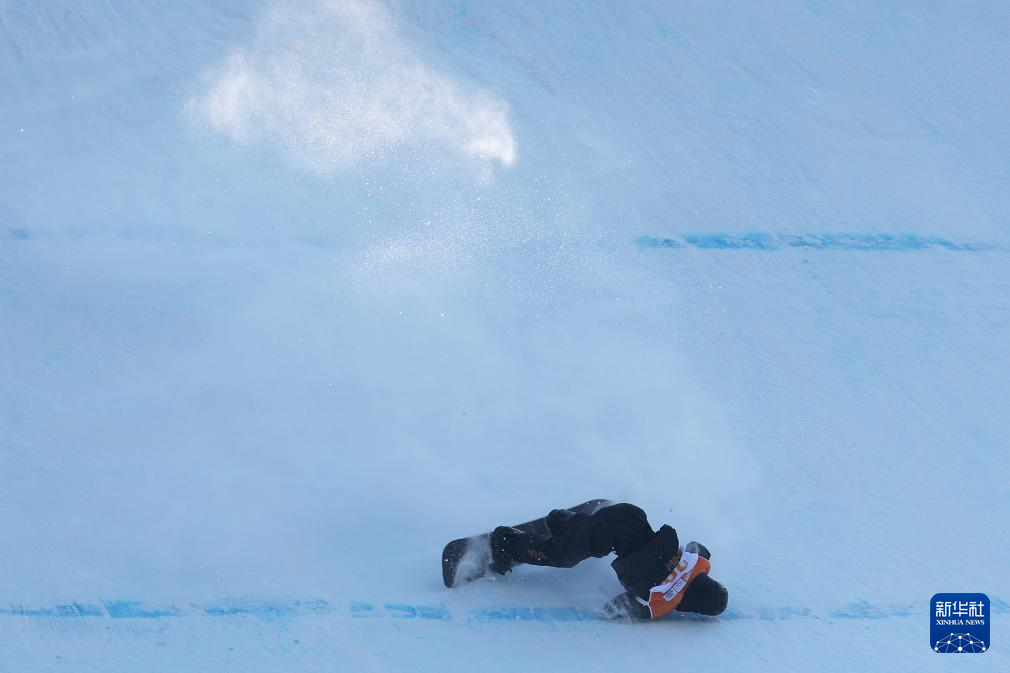 1月28日,葛春宇在决赛中失误摔倒。新华社记者 李明 摄