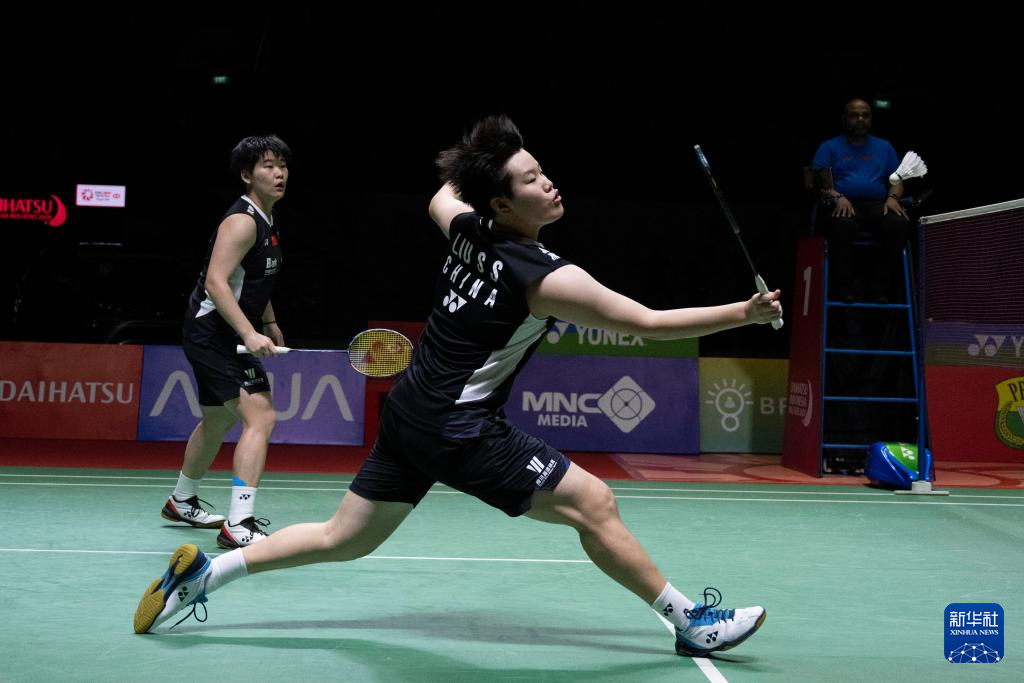 当日,在雅加达举行的2024年印度尼西亚羽毛球大师赛女双半决赛中,中国组合刘圣书/谭宁2比0战胜印度尼西亚组合兰妮/瑞贝卡,晋级决赛。