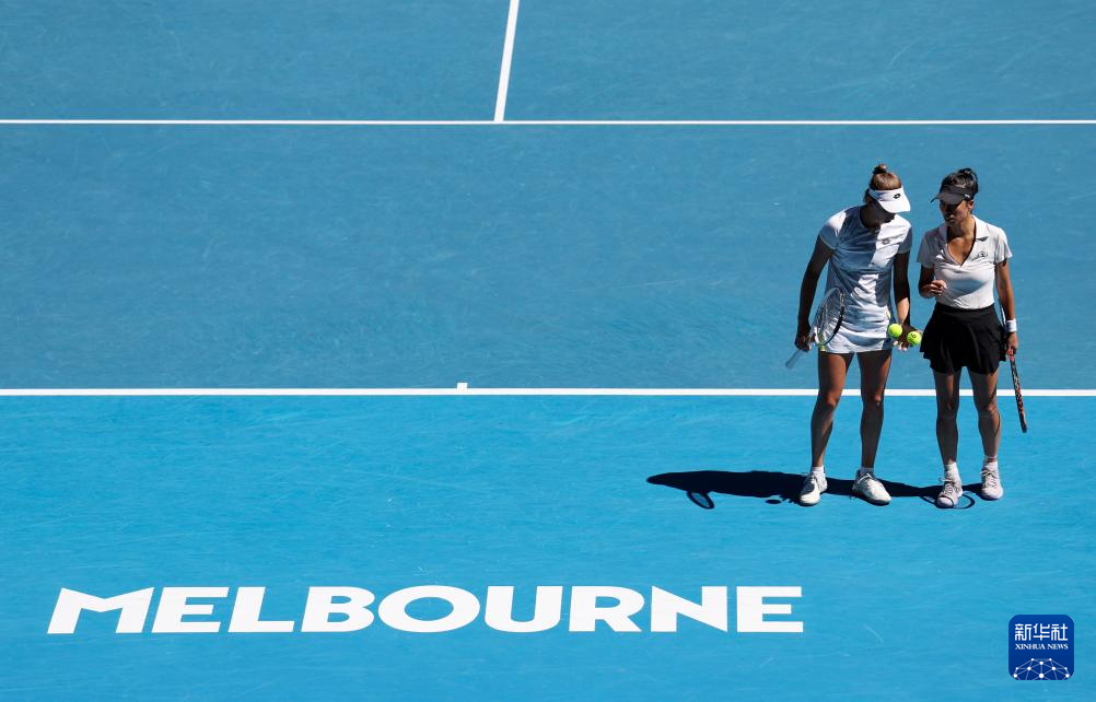 1月28日,谢淑薇(右)/梅尔滕斯在比赛中交流。新华社记者 马平 摄
