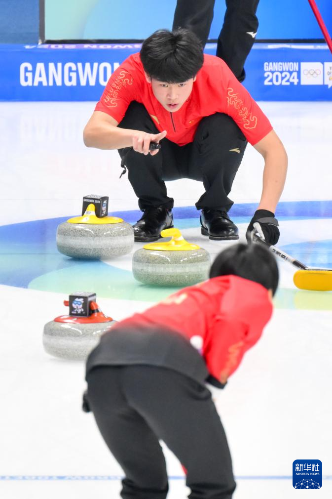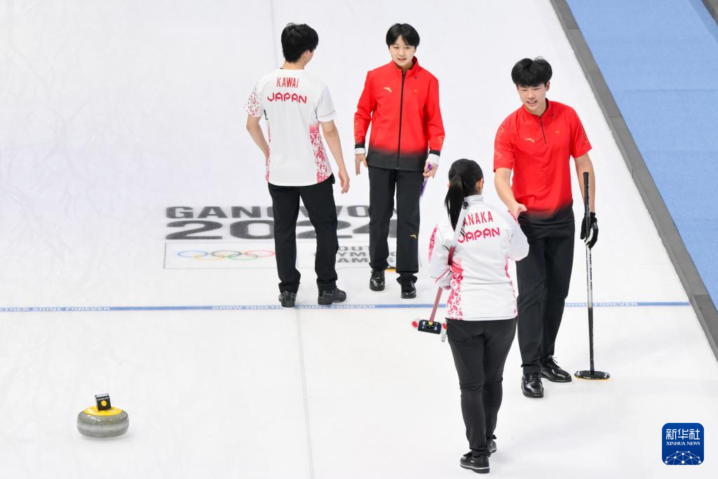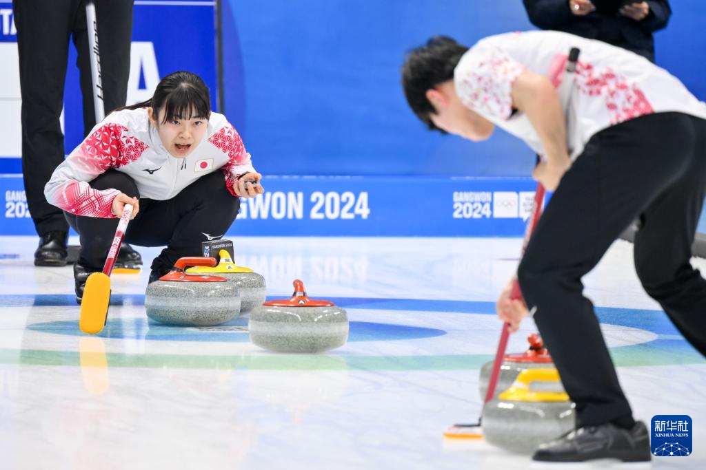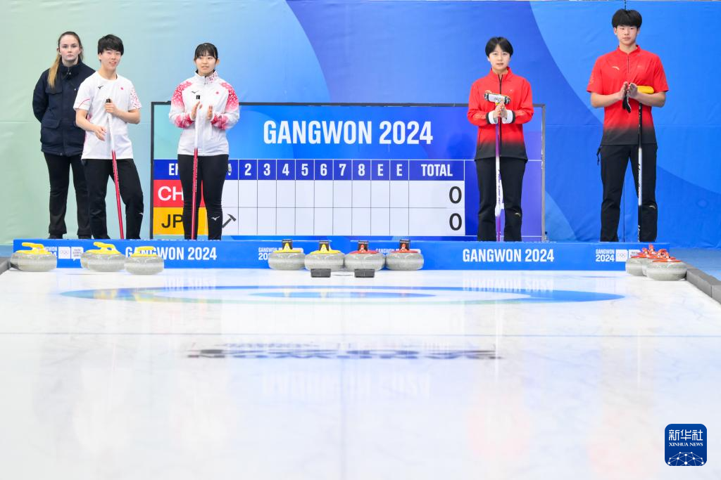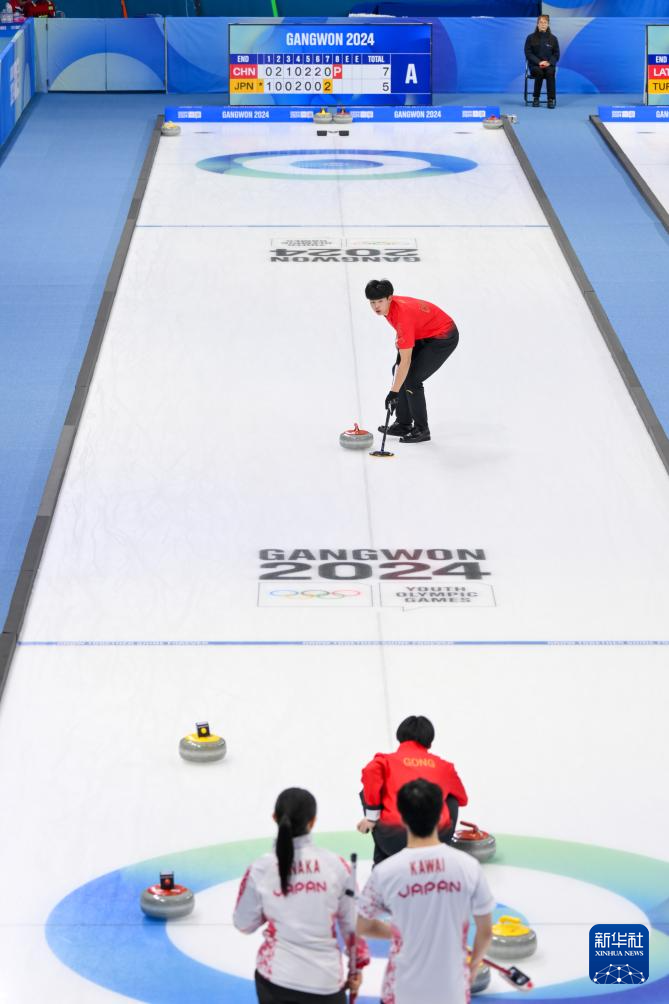 当日,第四届冬季青年奥林匹克运动会冰壶混合双人循环赛在韩国江原道江陵冰壶中心举行。中国组合龚长玉婷/许博康以7比5战胜日本组合田中萌珈/川合伸弥。