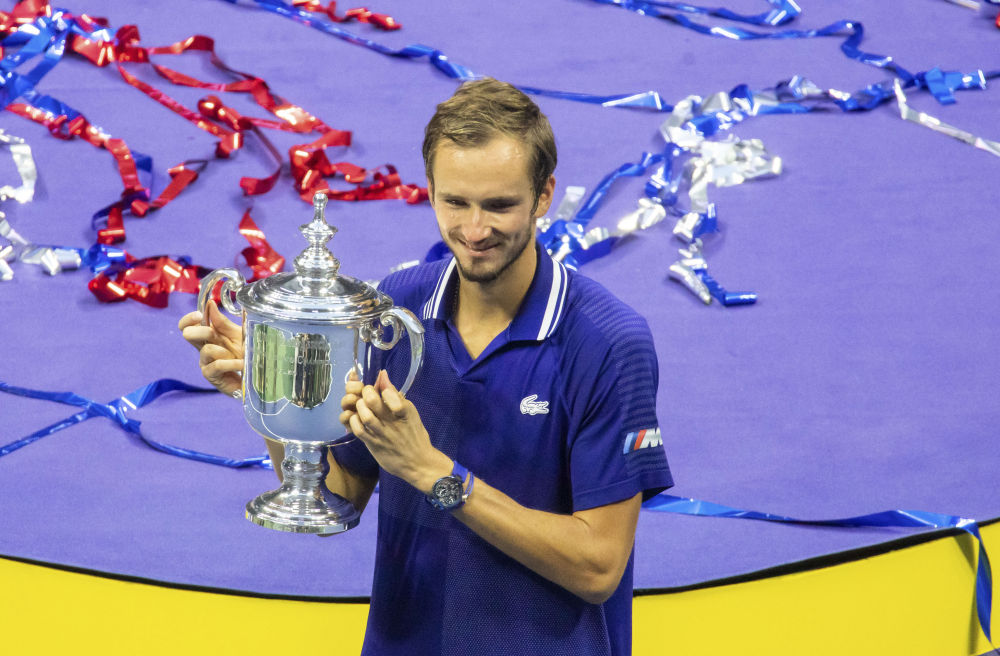 2021年9月12日,梅德韦杰夫在2021美国网球公开赛男单颁奖仪式上。新华社发(郭克 摄)