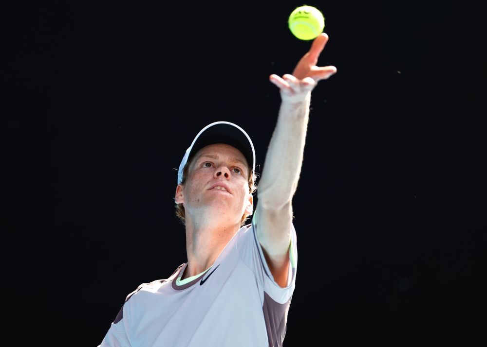 1月26日,辛纳在比赛中发球。新华社发(储晨 摄)