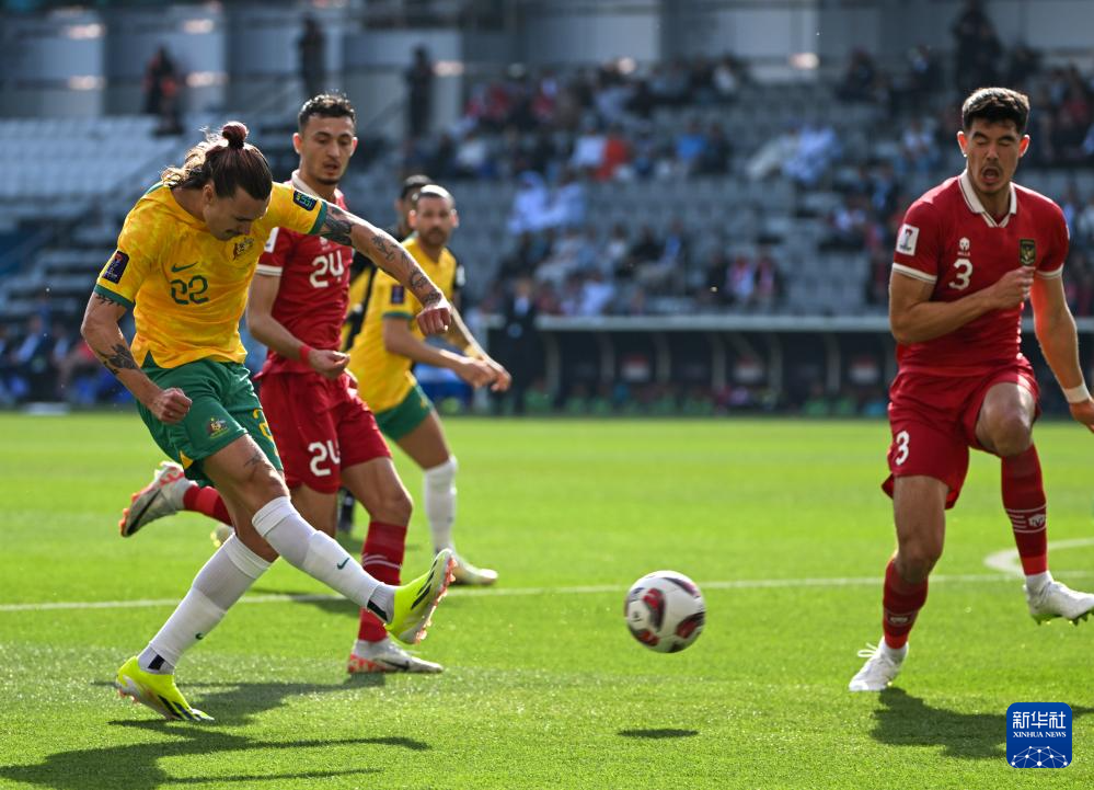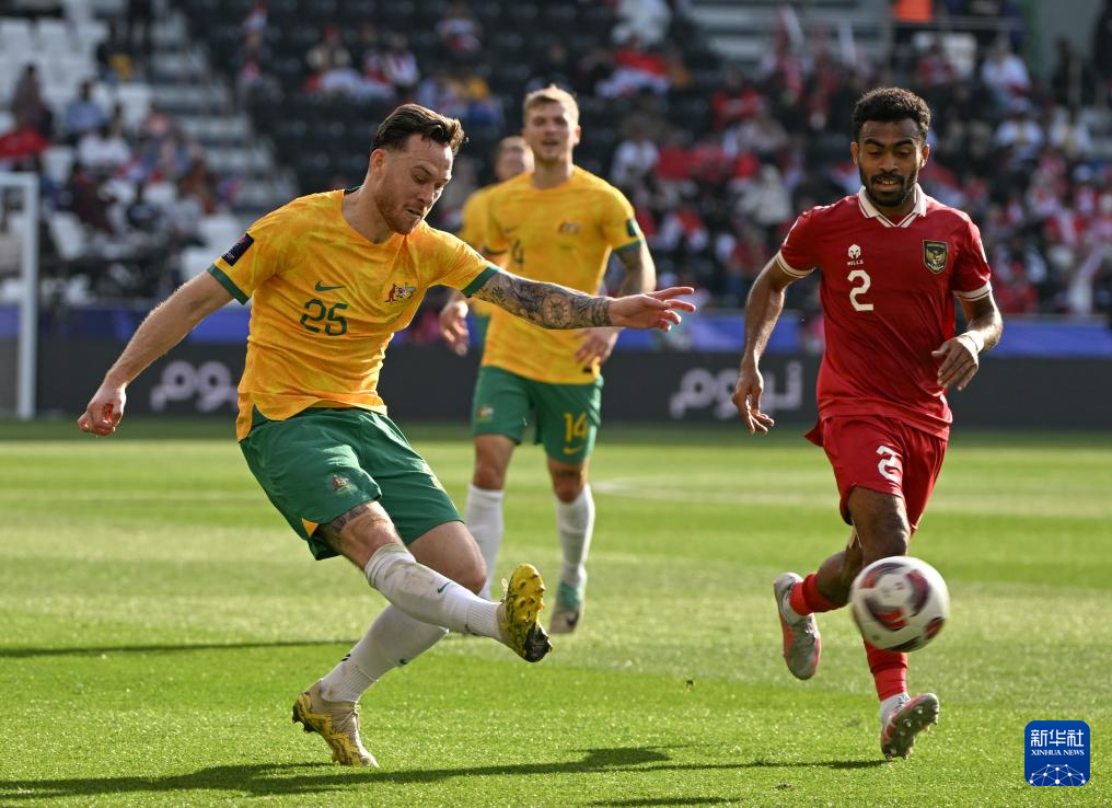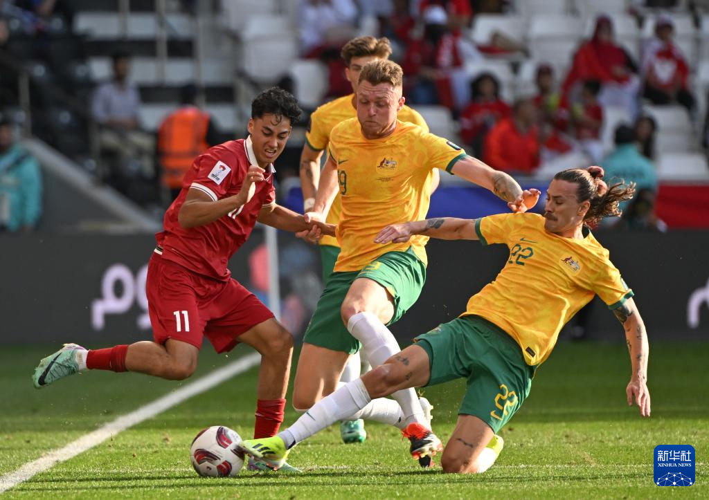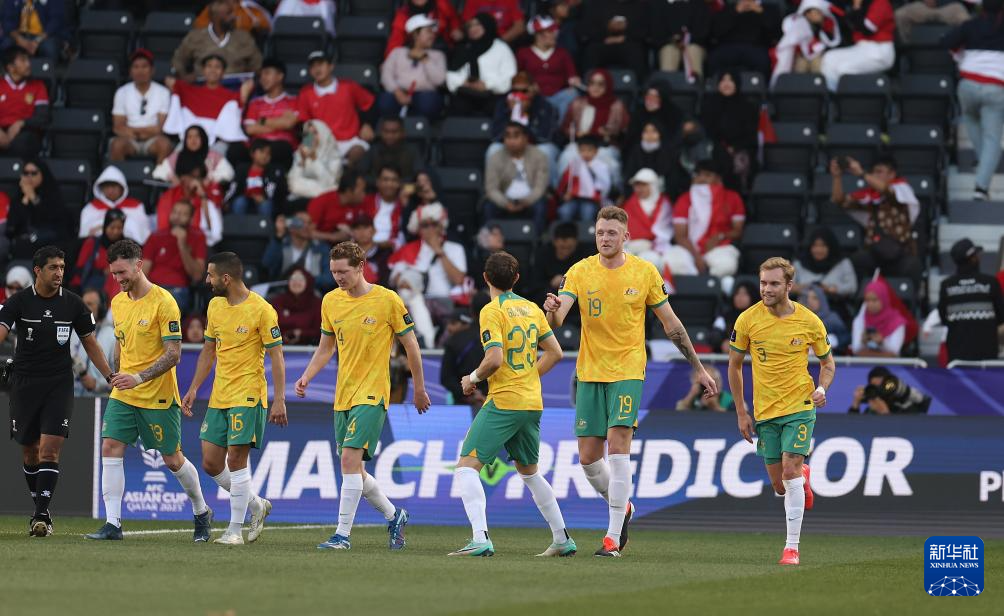 当日,在卡塔尔多哈贾西姆·本·哈马德球场举行的男足亚洲杯八分之一决赛中,澳大利亚队4比0战胜印度尼西亚队。