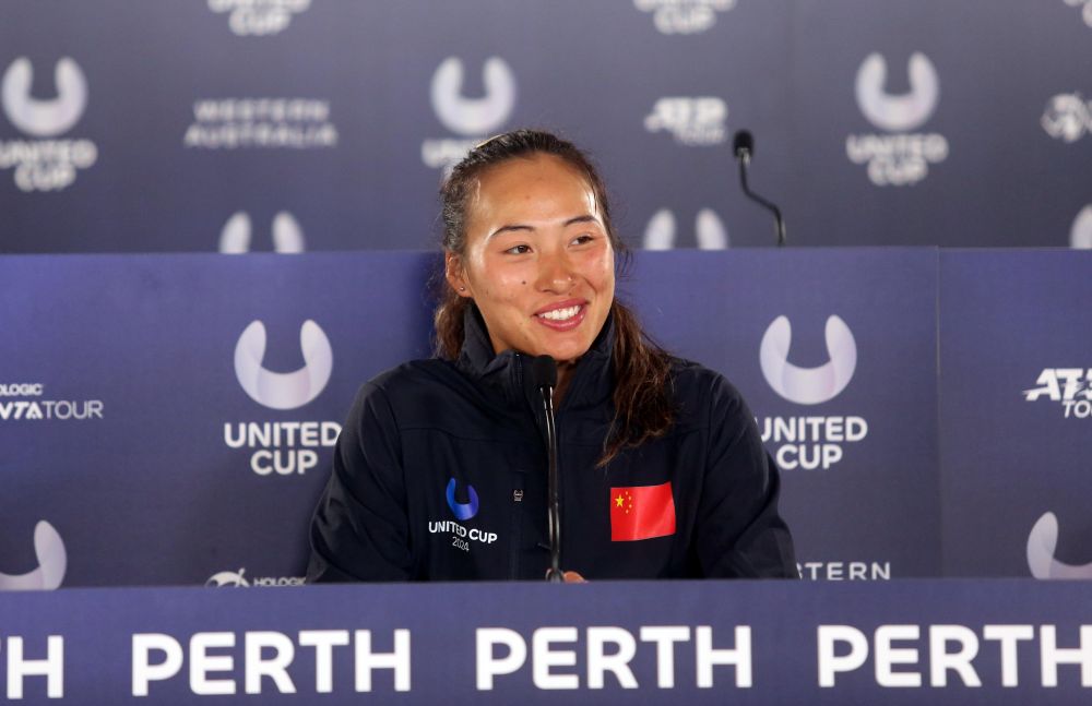 1月1日,郑钦文出席2024年网球联合杯赛后发布会。新华社发(周丹摄)