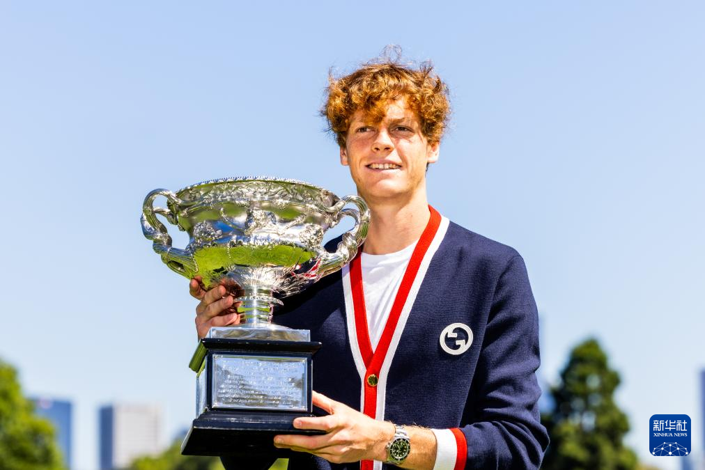 1月29日,辛纳展示奖杯。新华社发(储晨摄)