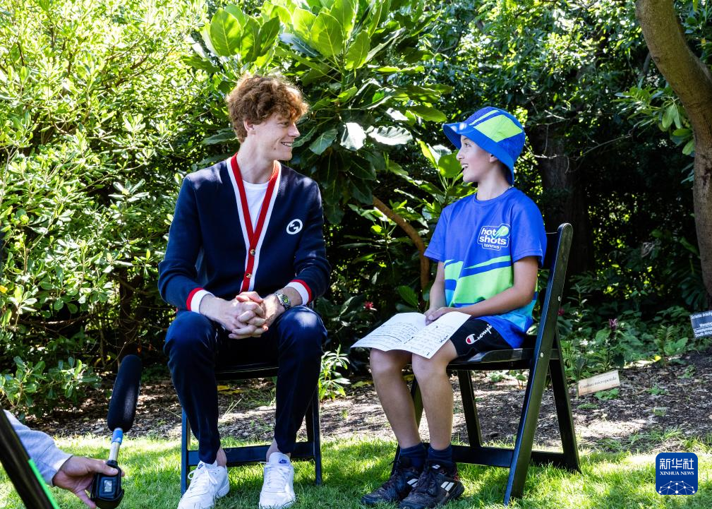1月29日,辛纳与一名小球童互动。新华社发(储晨摄)