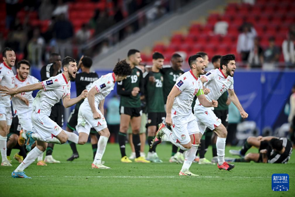 当日,在卡塔尔艾哈迈德·本·阿里体育场举行的男足亚洲杯八分之一决赛中,塔吉克斯坦队与阿联酋队在常规时间与加时赛中战成1比1平。通过点球大战,塔吉克斯坦队最终以6比4的总比分战胜阿联酋队,晋级八强。