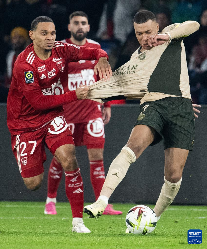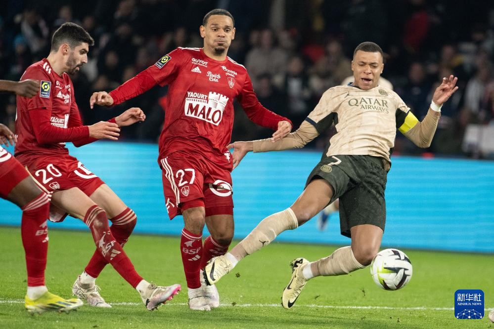 当日,在2023-2024赛季法国足球甲级联赛第19轮比赛中,巴黎圣日耳曼队主场2比2战平布雷斯特队。