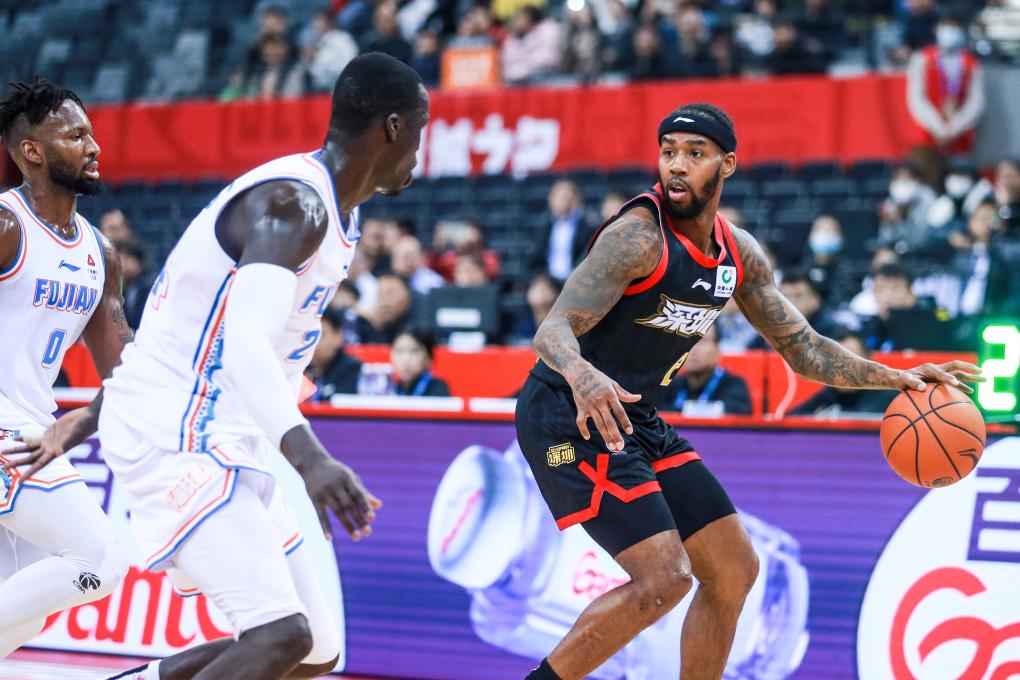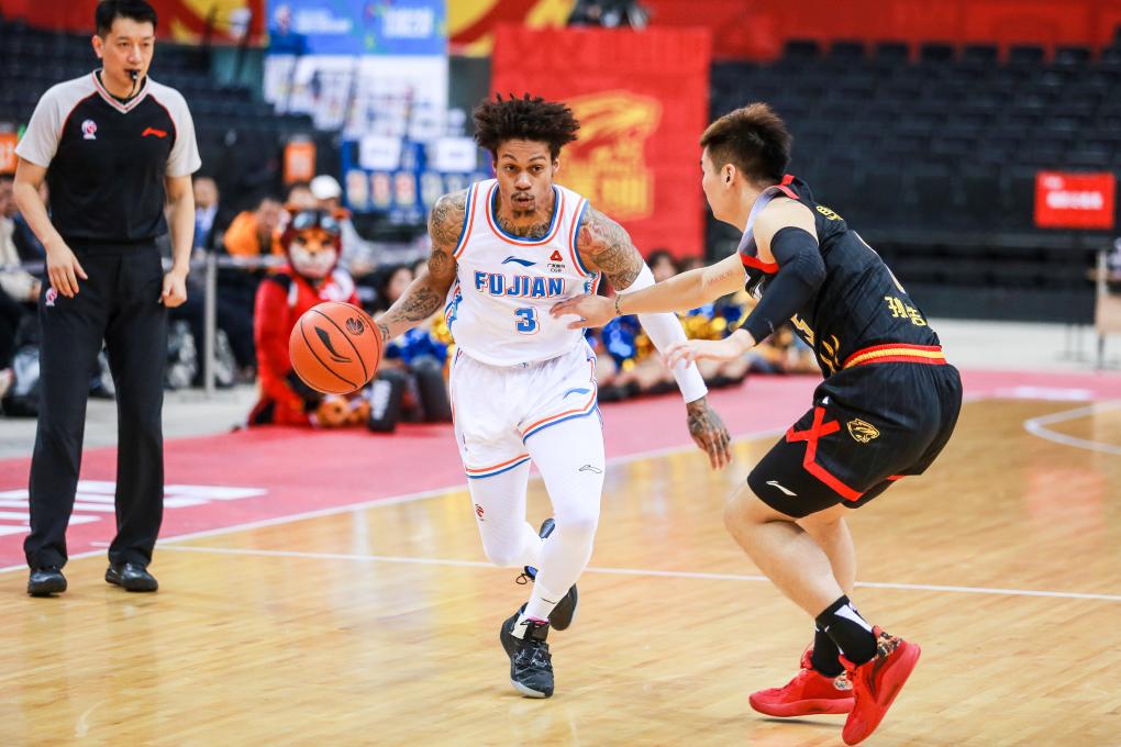 1月29日,福建浔兴股份队球员约瑟夫·杨(中)在比赛中带球突破。新华社发(彭志刚摄)
