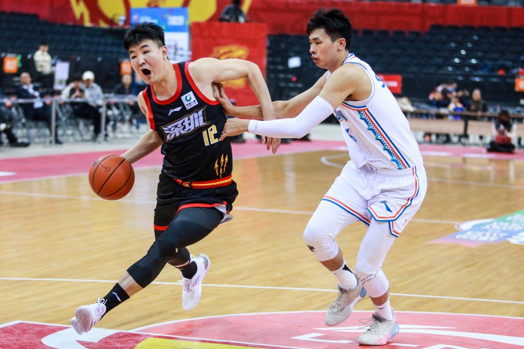 1月29日,深圳马可波罗队球员顾全(左)在比赛中带球突破。新华社发(彭志刚摄)