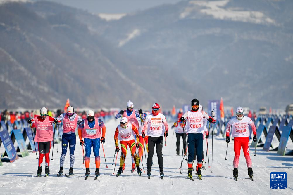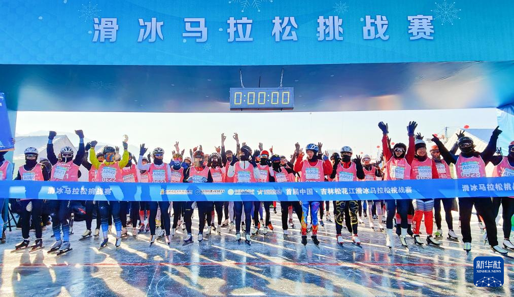1月30日,参赛者在滑冰马拉松挑战赛中从起点出发。新华社记者 颜麟蕴 摄
