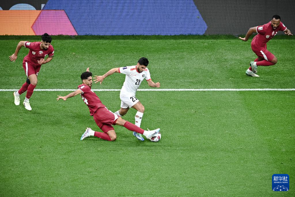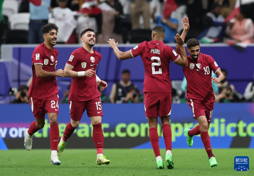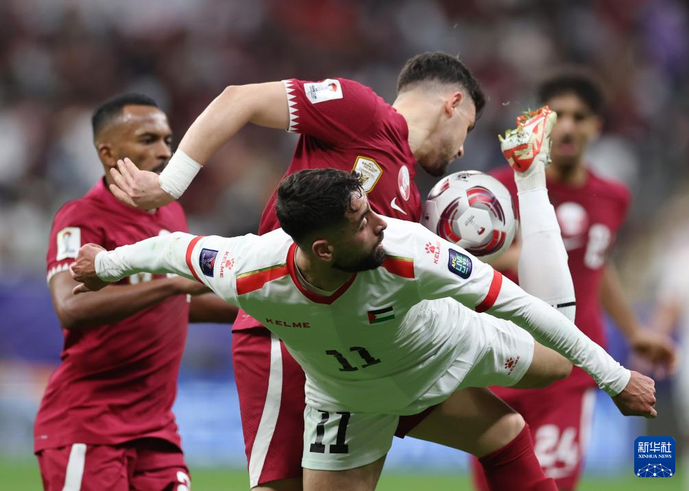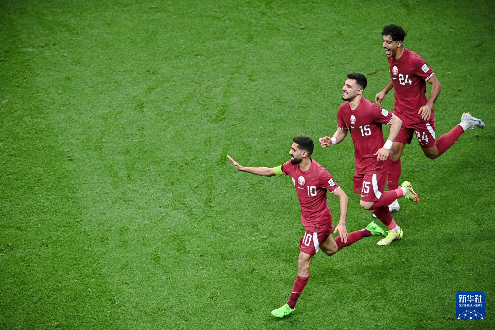 当日,在卡塔尔海湾球场举行的男足亚洲杯八分之一决赛中,卡塔尔队2比1战胜巴勒斯坦队,晋级八强。