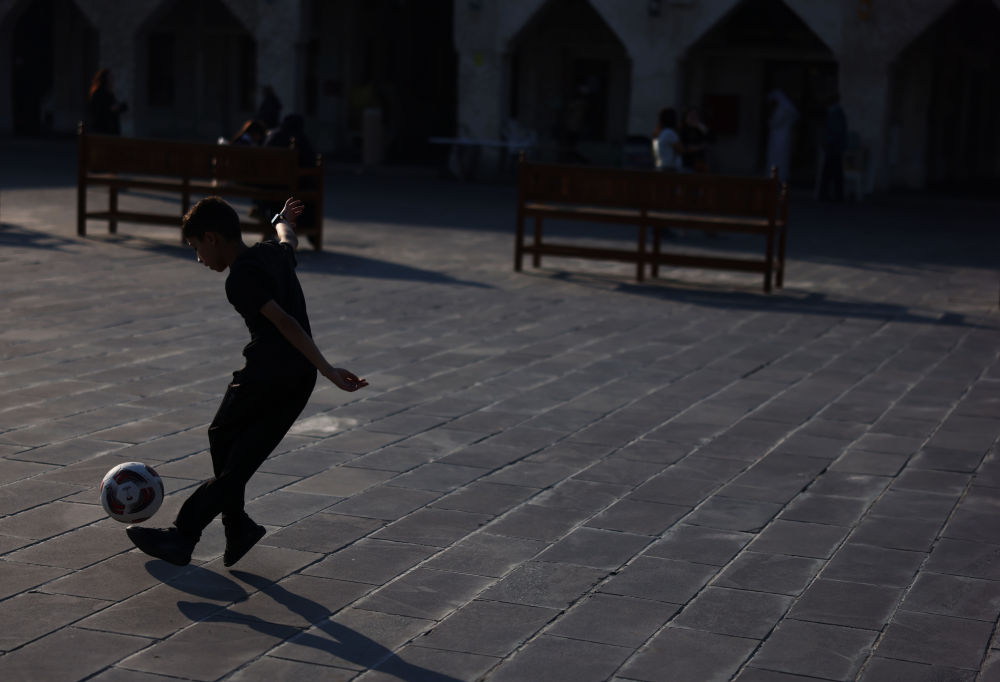 1月11日,一名男孩在多哈街头踢足球。新华社记者 贾浩成 摄