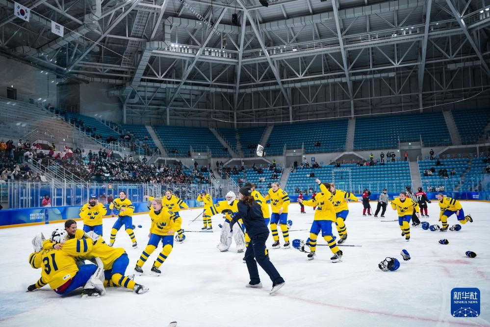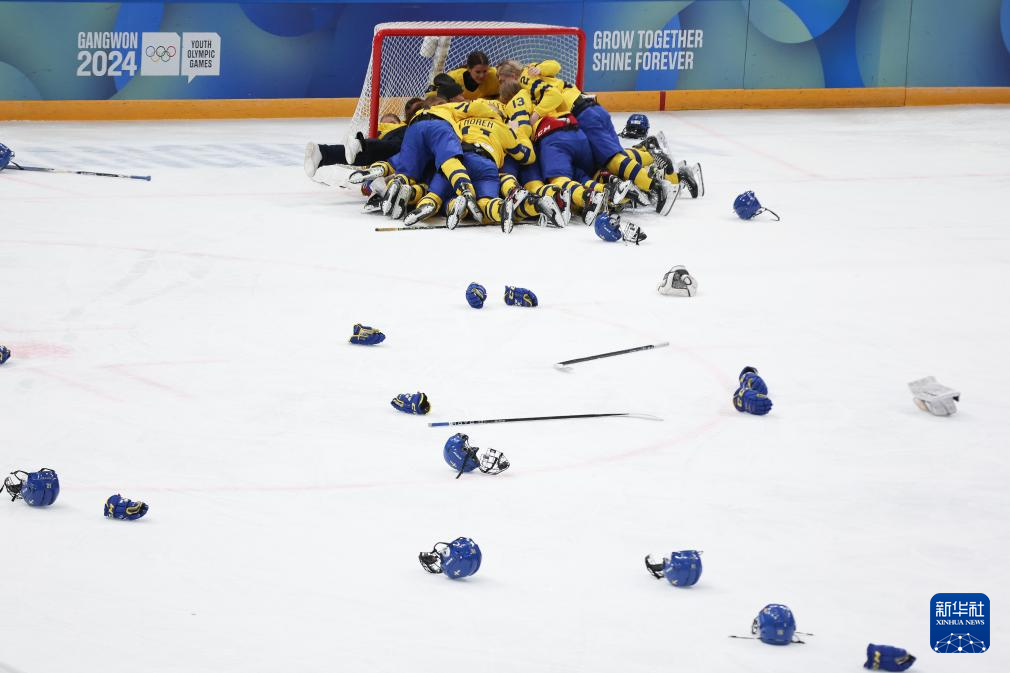当日,在韩国江陵举行的2024年江原道冬青奥会女子冰球金牌赛中,瑞典队4比0战胜日本队,获得冠军。