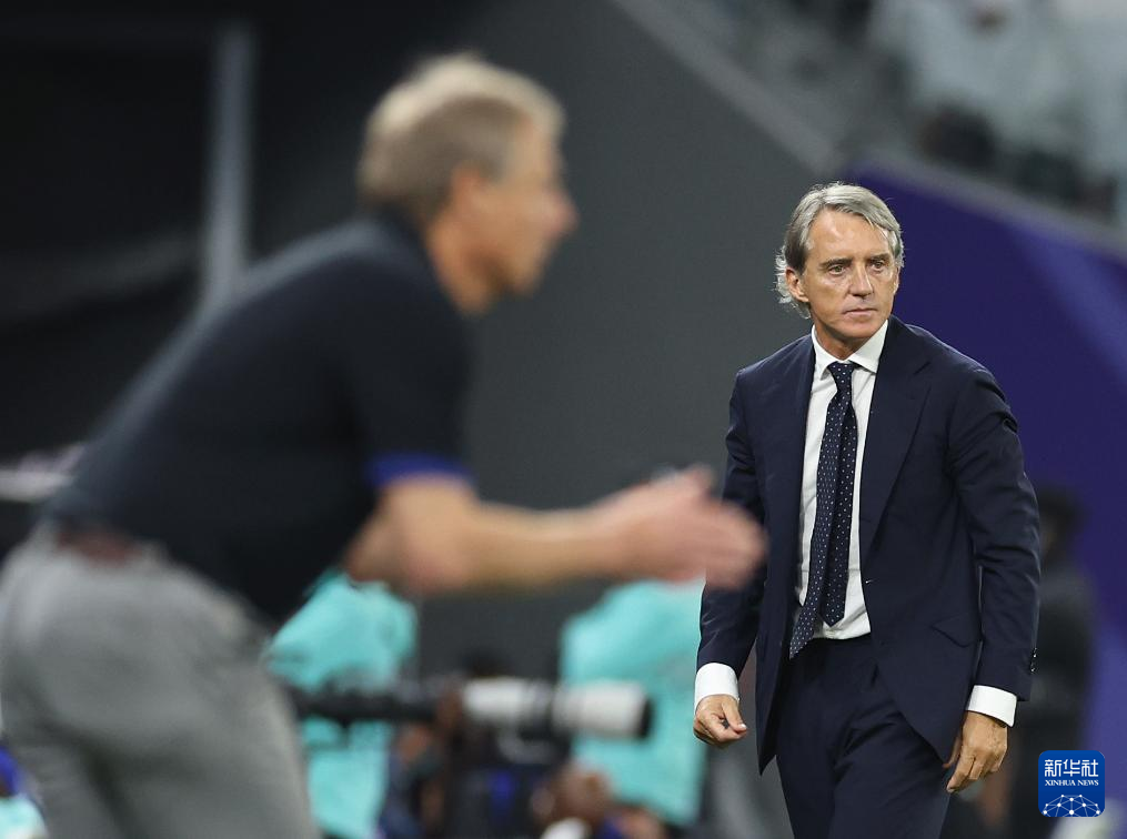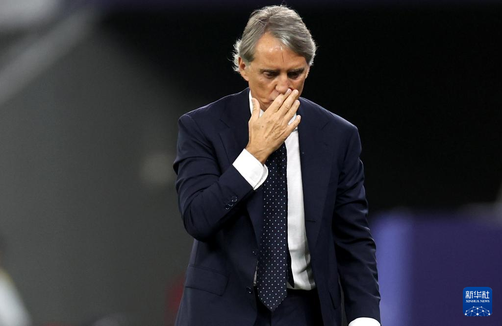 1月30日,沙特阿拉伯队主教练罗伯托·曼奇尼在场边。新华社记者 孙凡越 摄