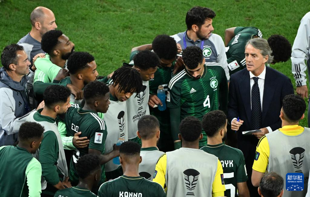 1月30日,沙特阿拉伯队主教练罗伯托·曼奇尼在场边指挥。新华社记者 曹灿 摄