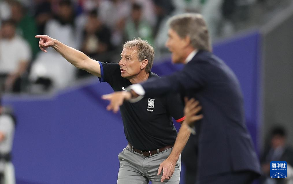 1月30日,韩国队主教练尤尔根·克林斯曼(左)与沙特阿拉伯队主教练罗伯托·曼奇尼在场边指挥。新华社记者 曹灿 摄