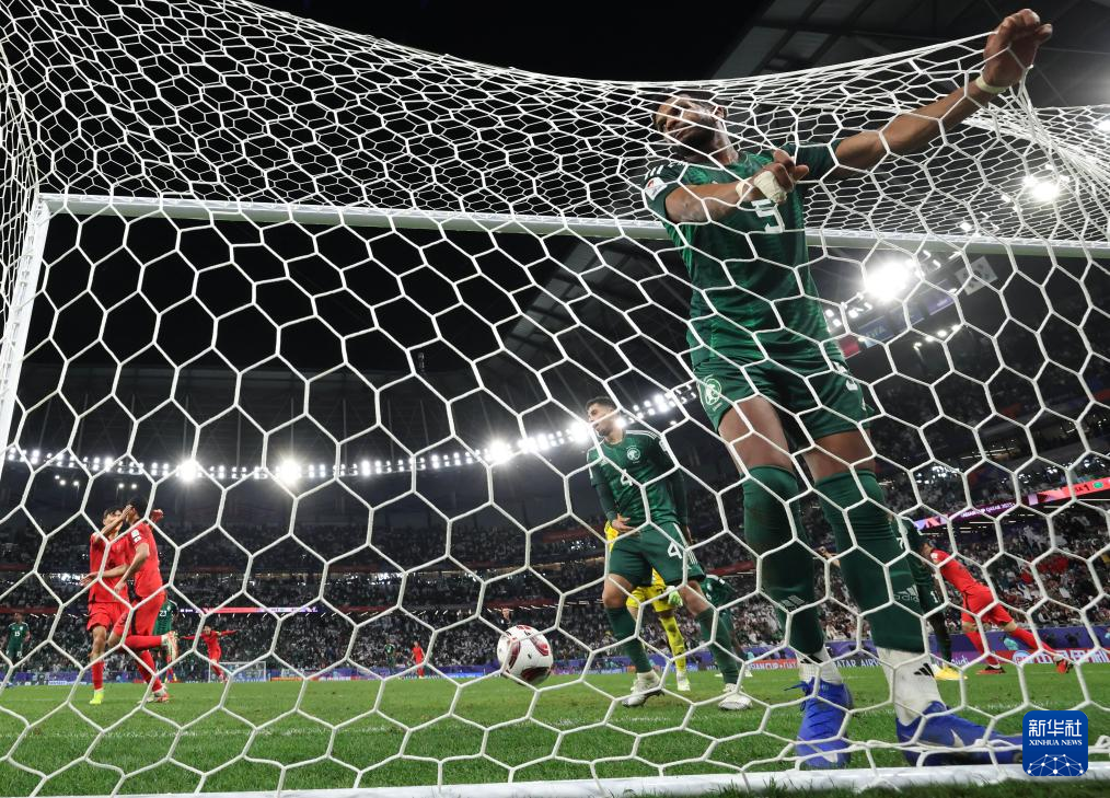 1月30日,沙特阿拉伯队球员阿卜杜拉·拉迪夫(左一)在下半场比赛开始后不久进球。新华社记者 孙凡越 摄