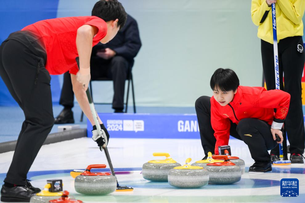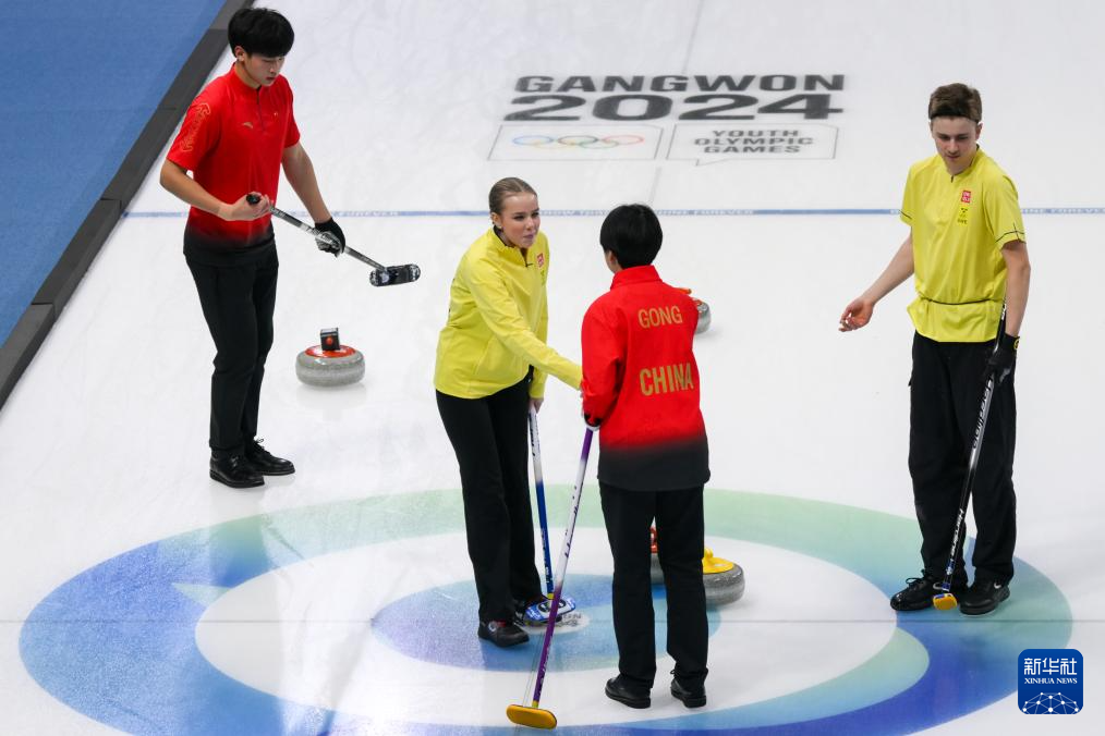 当日,在韩国江陵举行的2024年江原道冬青奥会冰壶混合双人四分之一决赛中,中国组合龚长玉婷/许博康6比9不敌瑞典组合罗克辛/迈耶尔松,无缘半决赛。