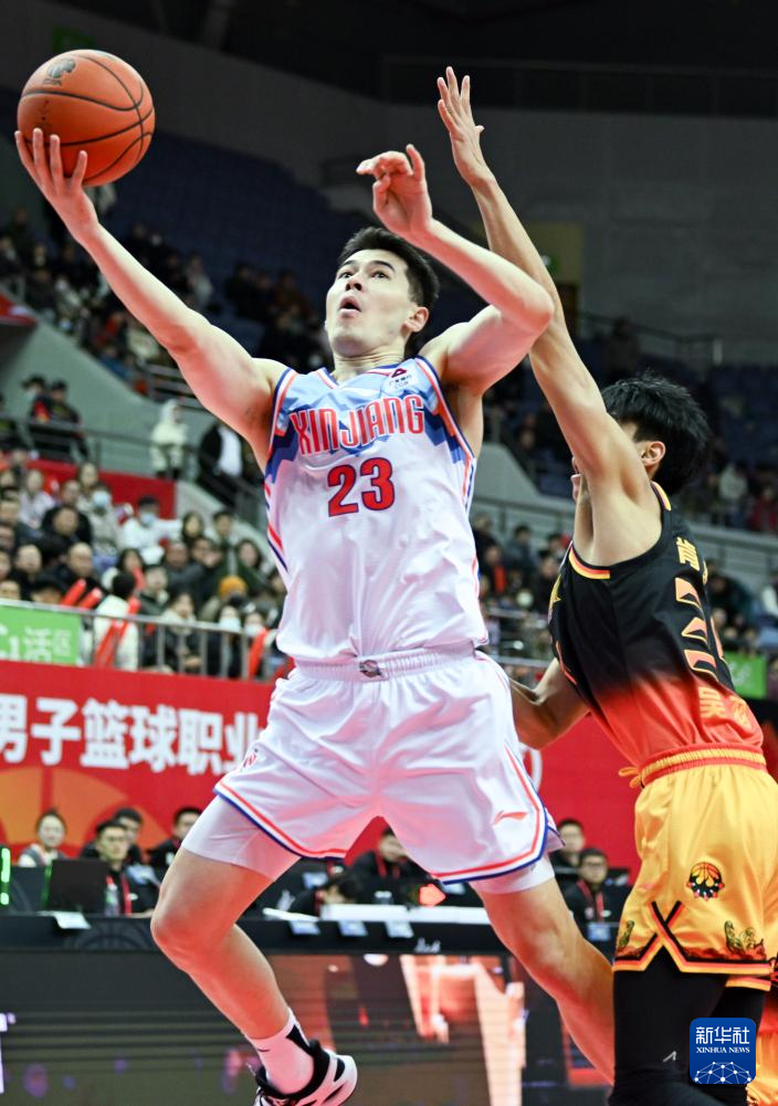 1月31日,新疆伊力特队球员阿不都沙拉木(左)在比赛中上篮。新华社发(王须中摄)