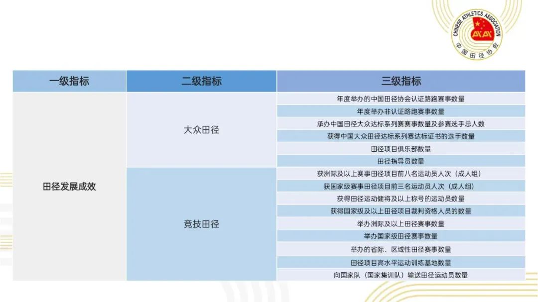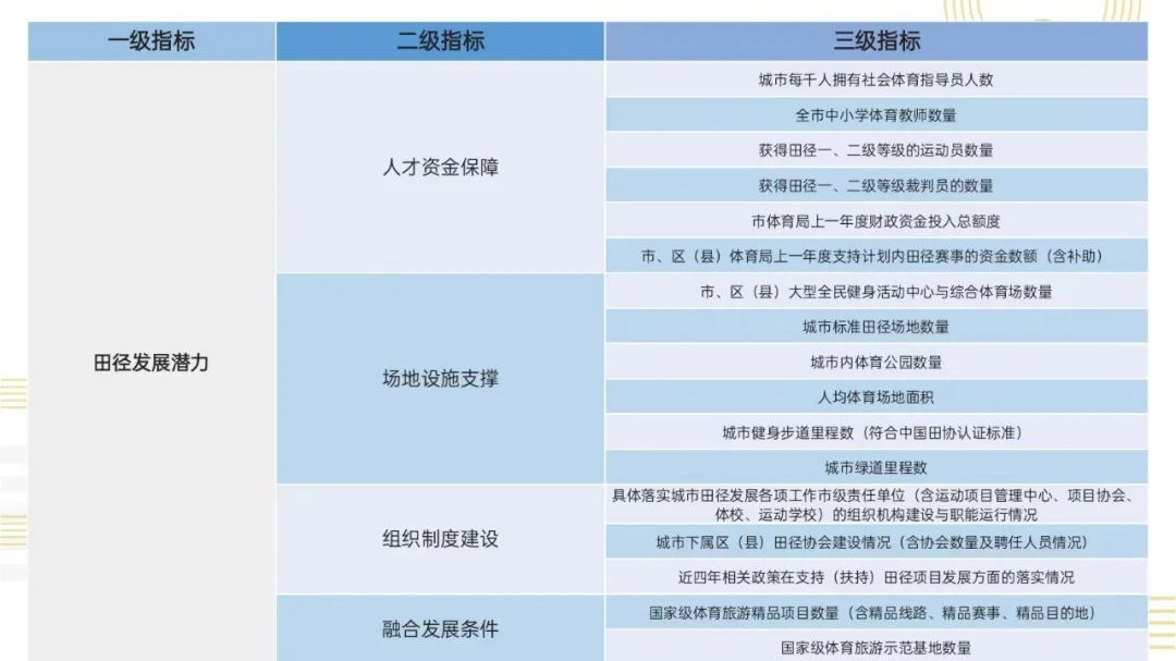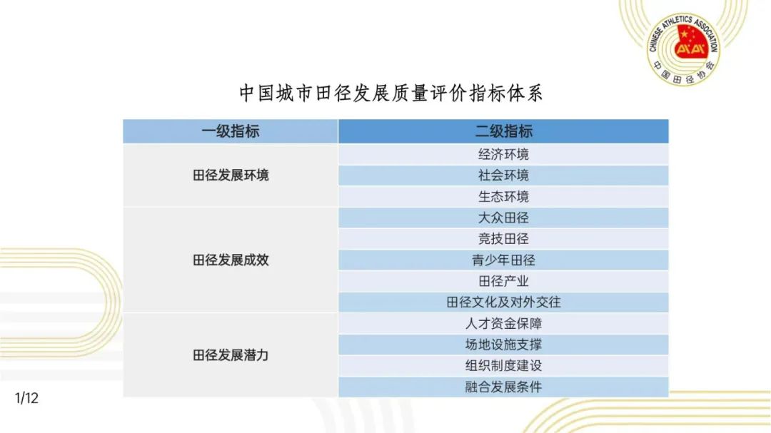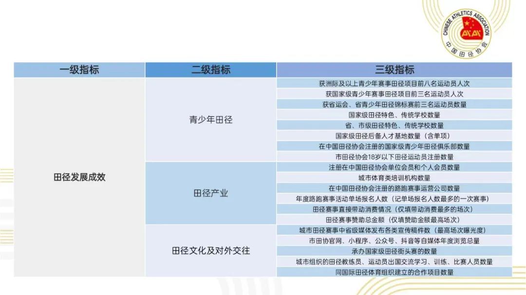 据悉,为更加客观、全面地掌握当前我国各城市田径发展现状,更加科学、精准地评估各城市田径发展的环境、成效与潜力,去年9月,中国田径协会联合国家体育总局体育科学研究所中国体育经济研究中心,聚焦城市田径高质量发展的关键点,开展了《中国城市田径发展质量评价指标体系》的研究工作。