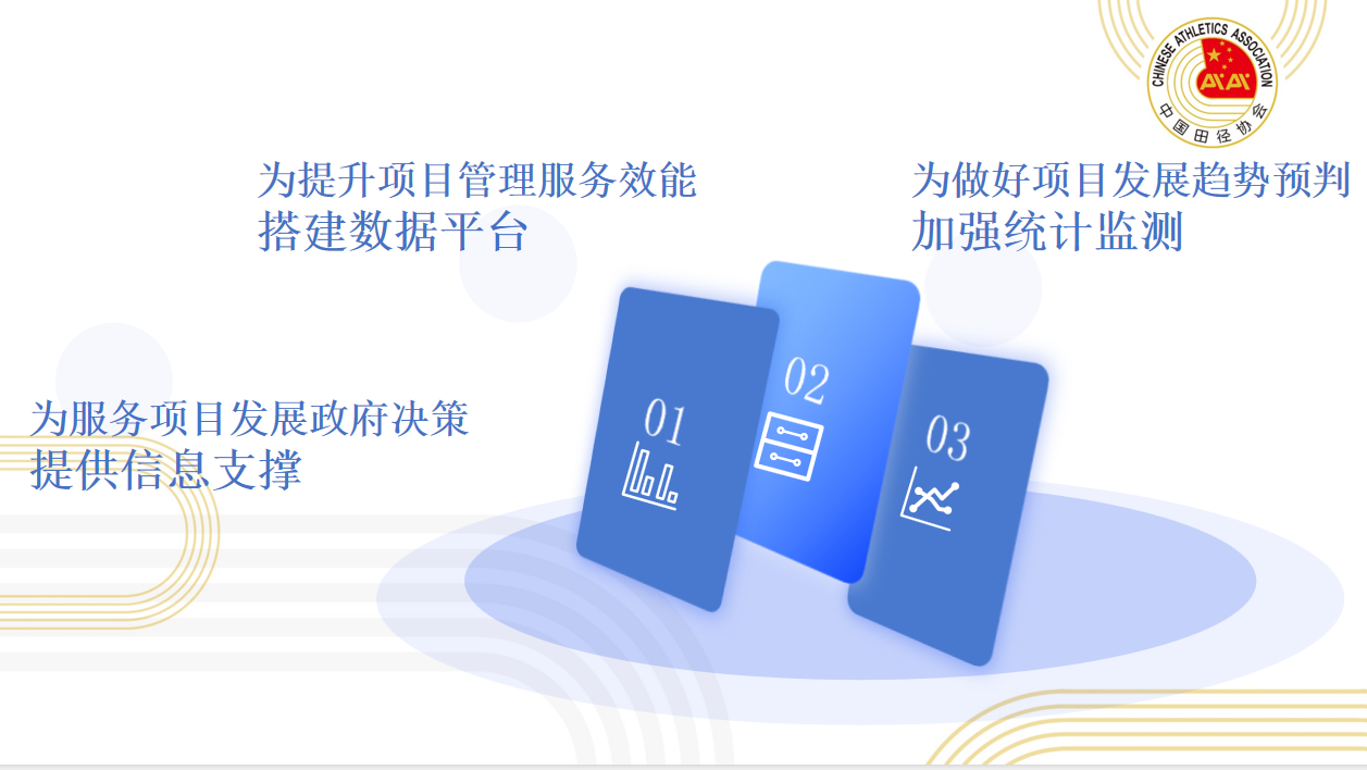 “我们希望通过这项工作的开展,实现以下三个目标。”蔡勇表示,一是为制定田径项目发展政策,优化项目资源配置,提供更加准确的信息支撑;二是为不断提高中国田径协会的管理服务效能,搭建数据平台;三是为更加全面、系统地掌握我国各个城市田径项目发展的基本情况,做好项目发展趋势预判,完善统计监测机制,同时加强中国田径协会与地方体育行政部门、田径协会的联系与沟通。