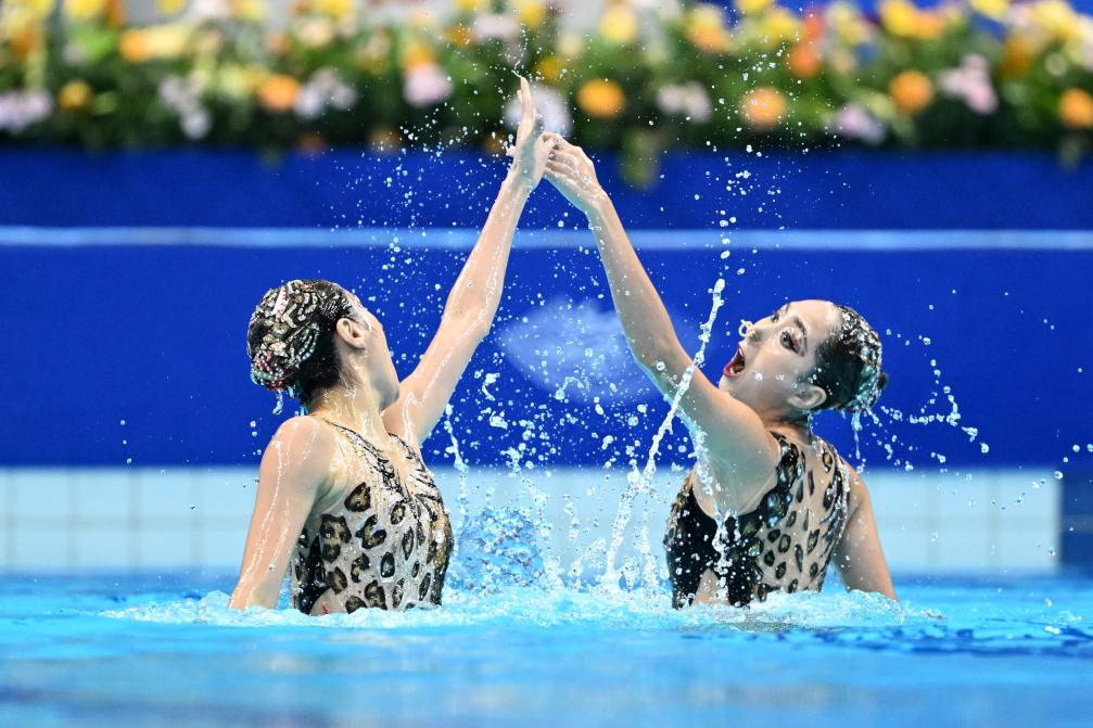 资料图:杭州亚运会,王柳懿/王芊懿在双人自由自选比赛中获得冠军。新华社记者 薛宇舸 摄
