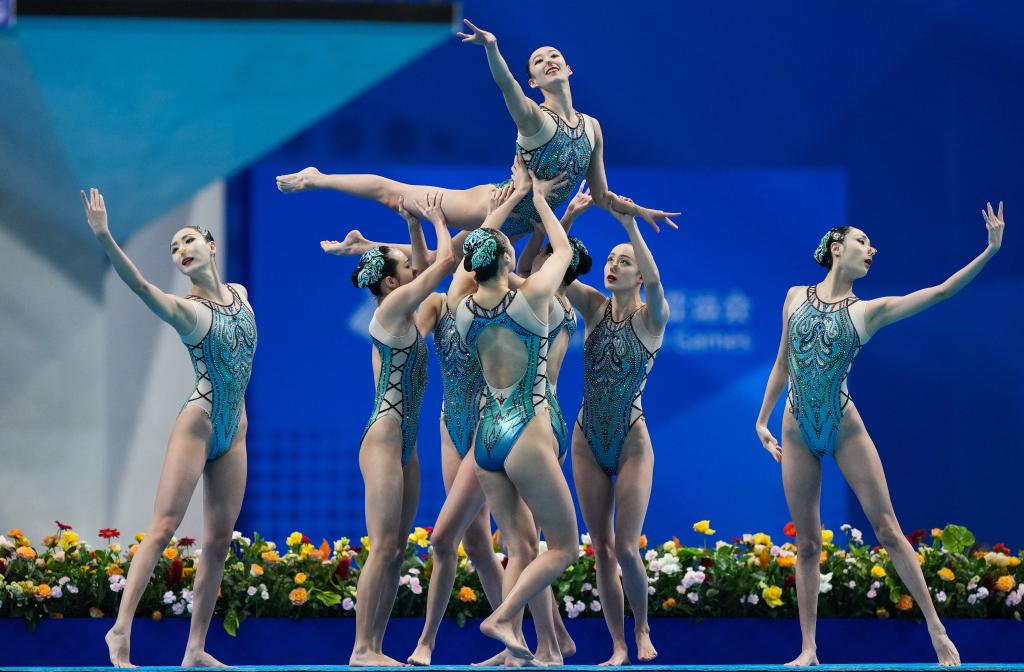 资料图:杭州亚运会,中国队获得花样游泳集体自由自选冠军。新华社记者 杜宇 摄