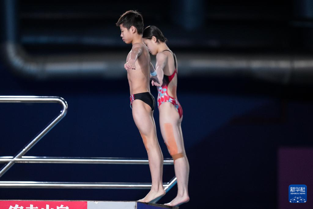 当日,在卡塔尔多哈举行的2024年世界游泳锦标赛跳水项目混双10米台决赛中,中国组合张家齐/黄建杰以353.82分的成绩夺得冠军。