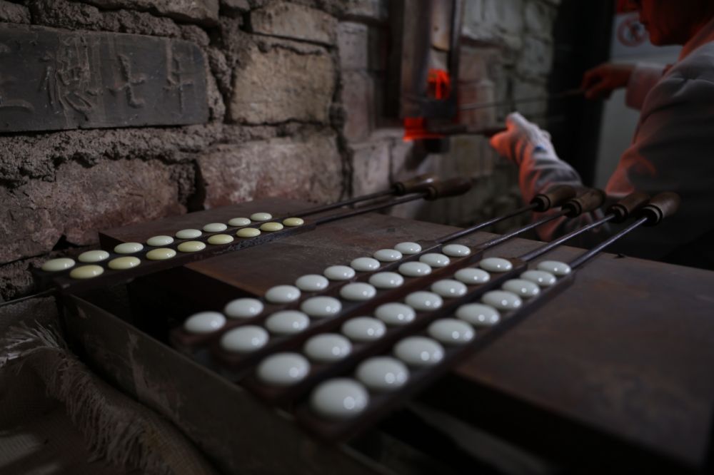 永子制作工艺复杂,包括选料、研磨、配料、熔炼、手工滴制、退火冷却、打磨、漂洗晾晒、分拣、包装成品等步骤,其关键制作过程均为手工,熔炼、点丹、分拣全凭经验积累,需要手艺人有工匠精神。