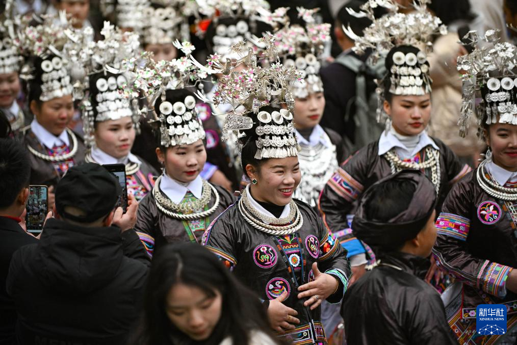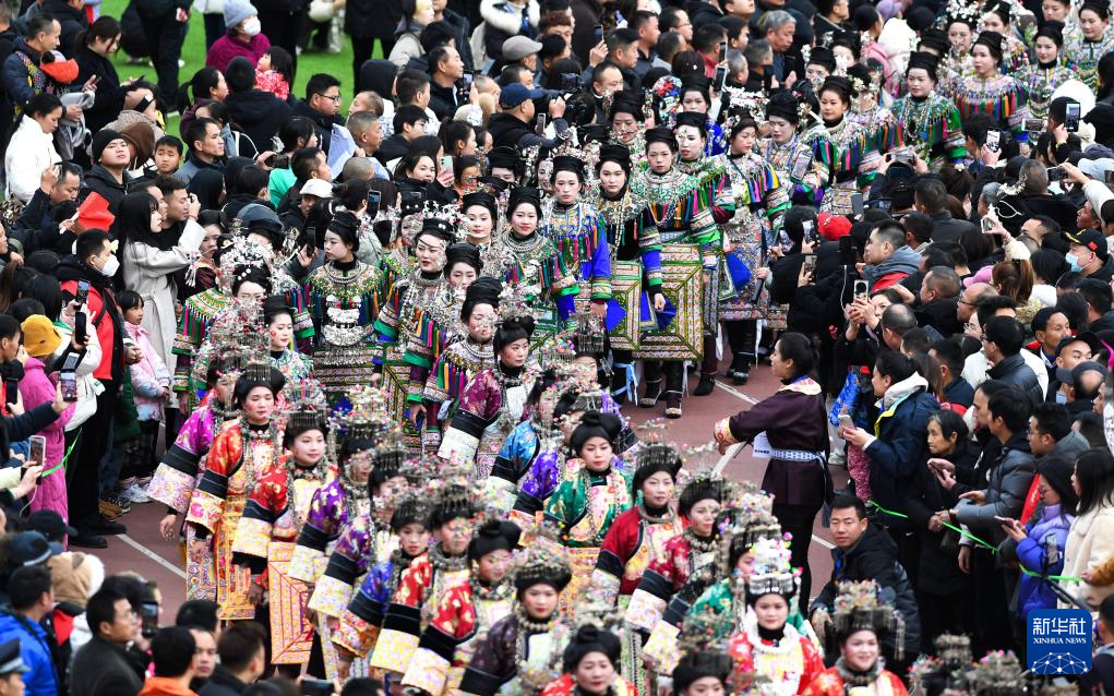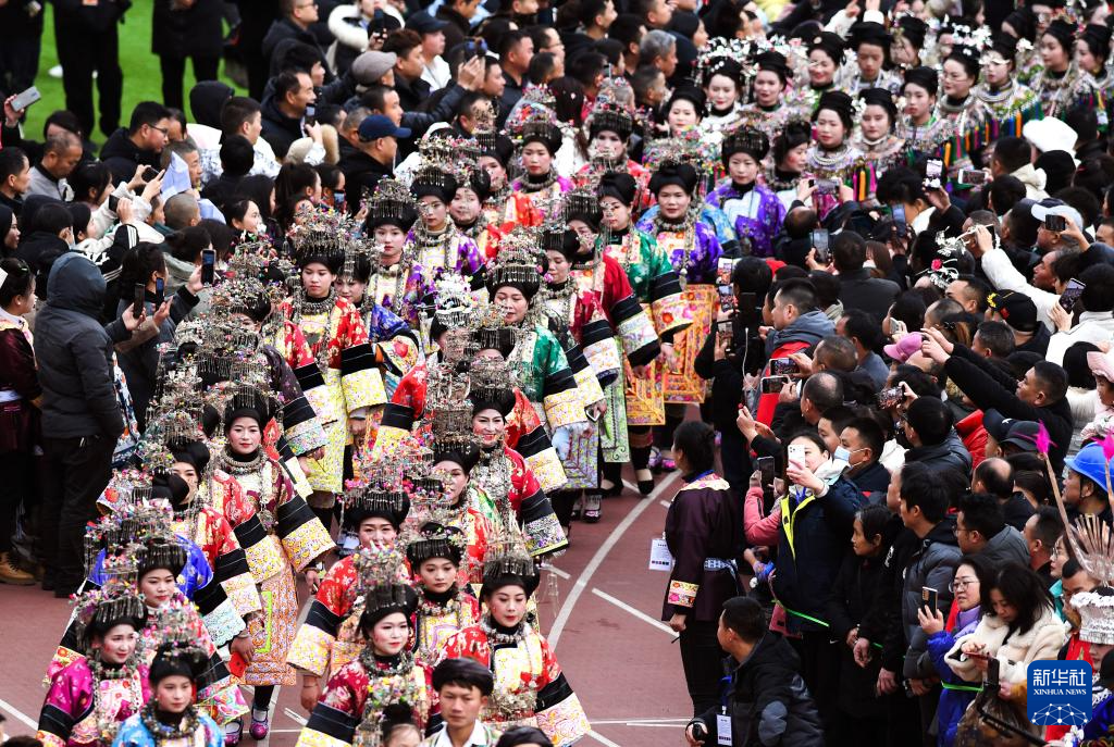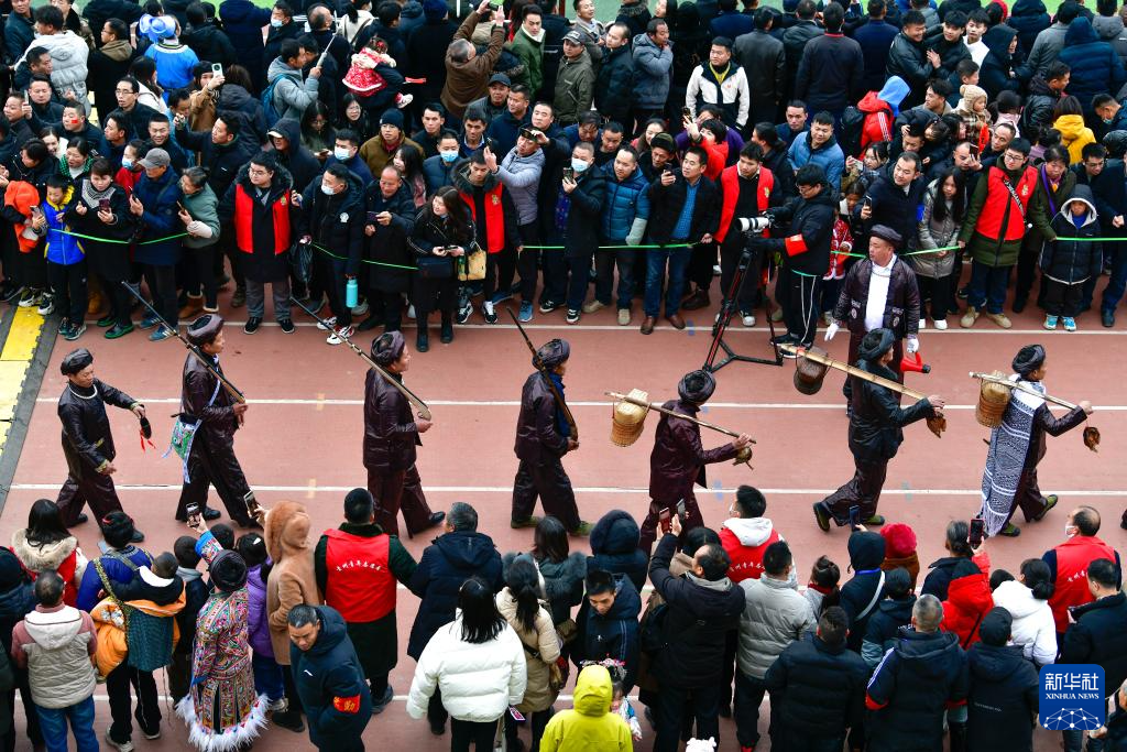 2月3日,村民组成的表演队身着民族服装进入活动现场。新华社记者 刘续 摄