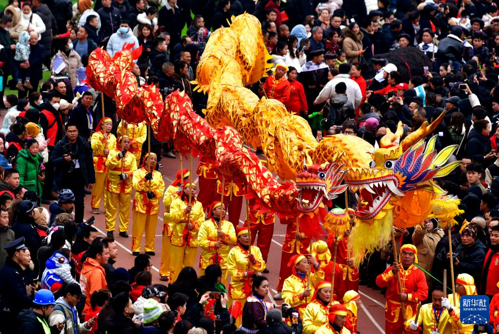 2月3日,演员在“村晚”上表演舞龙。新华社记者 杨文斌 摄