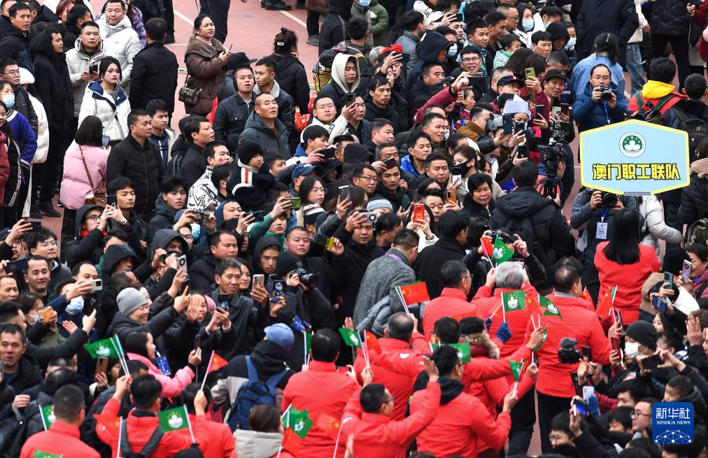2月3日,观众夹道欢迎前来参赛的澳门职工联队。新华社记者 杨文斌 摄