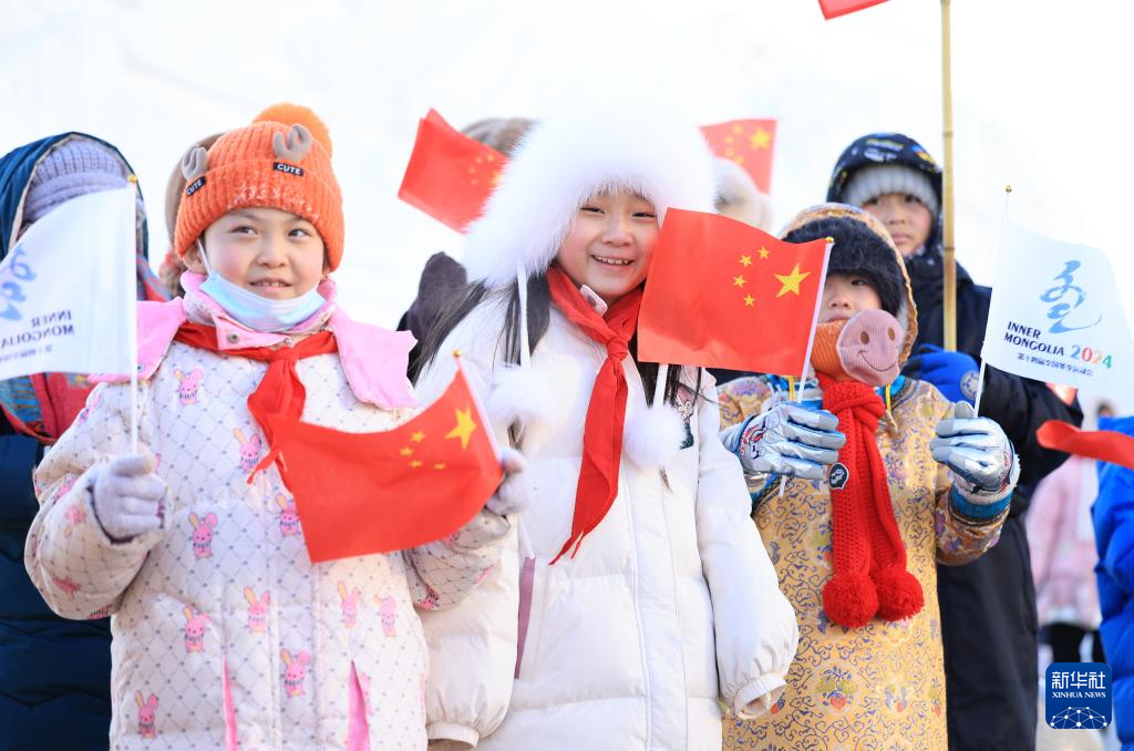 2月3日,孩子们观看火炬传递。新华社发(康文魁摄)