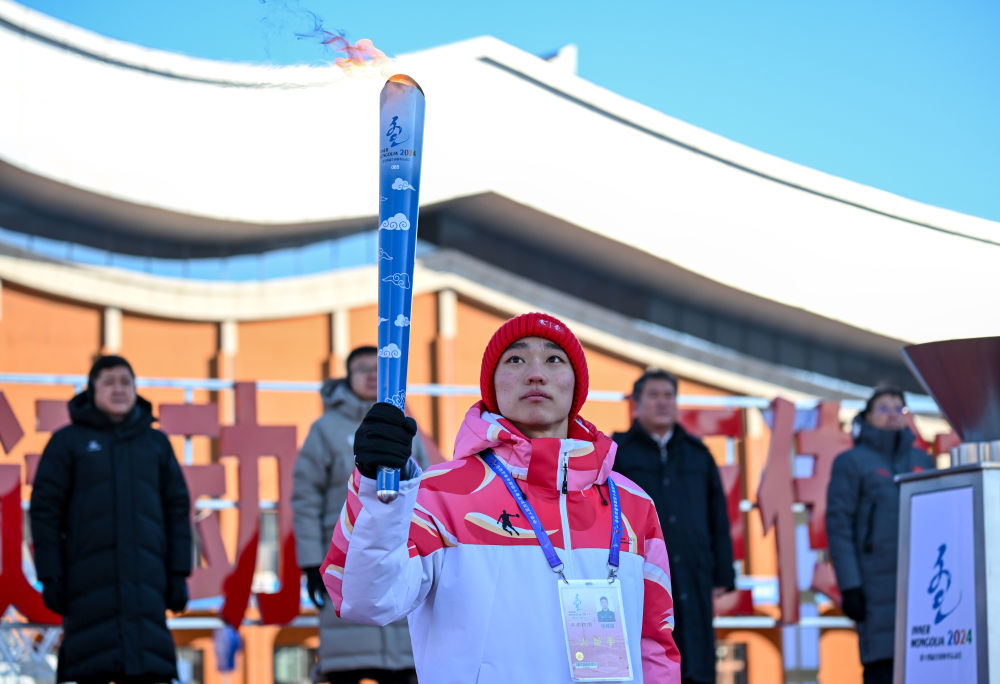 2月3日,第十四届全国冬季运动会火炬传递活动在内蒙古自治区呼伦贝尔市举行。9时13分,圣火护卫手持火种灯走进活动现场,内蒙古自治区副主席么永波手持点火棒点燃圣火盆,国家体育总局副局长李颖川点燃火炬后将其交给第一棒火炬手王桂芳,本次火炬传递活动开始。