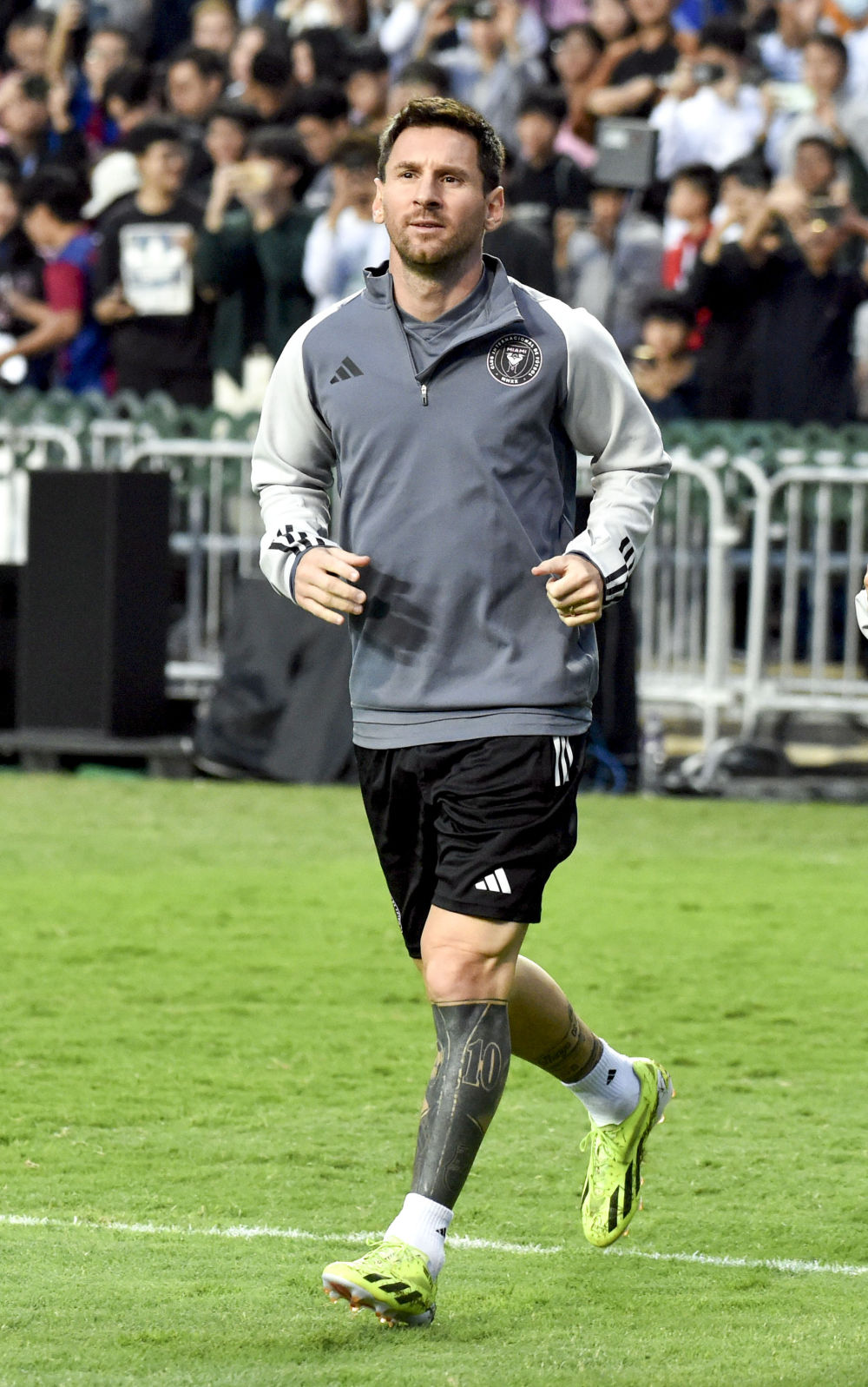 2月3日,迈阿密国际队球员梅西(中)在训练前亮相。新华社记者 卢炳辉 摄