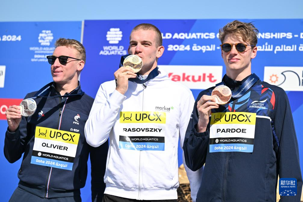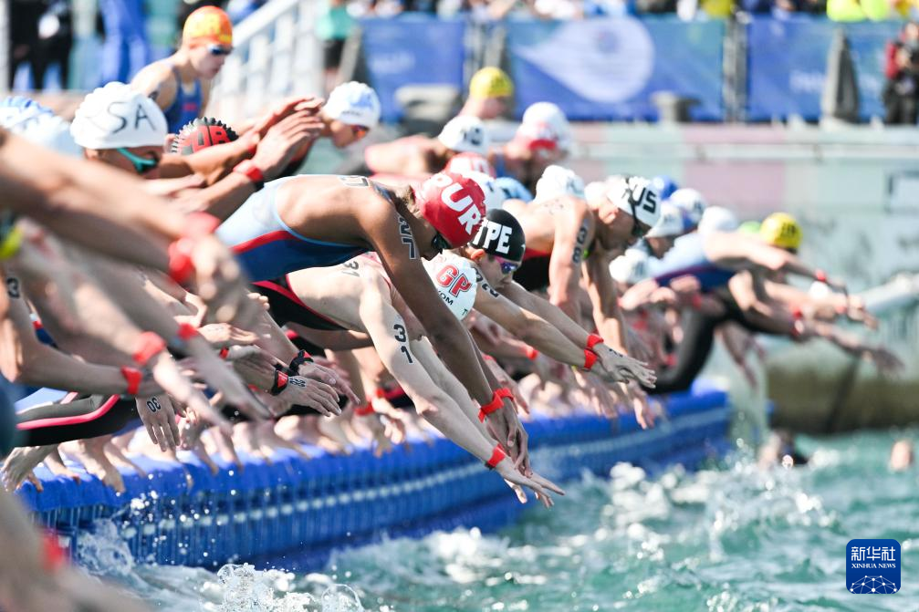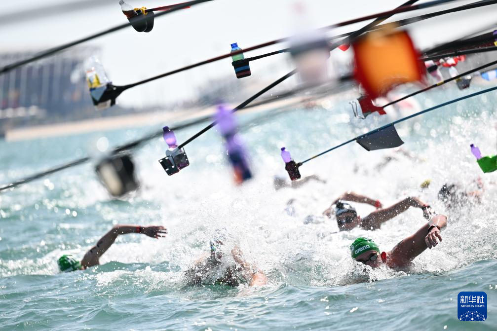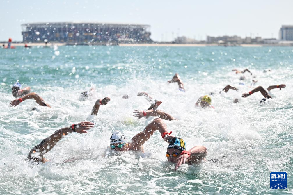 当日,2024年世界游泳锦标赛公开水域男子10公里决赛在卡塔尔多哈举行。