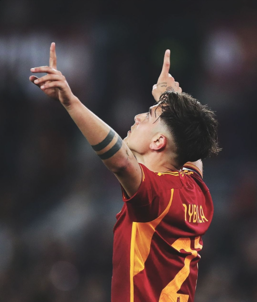 迪巴拉庆祝破门。图片来源自意甲官方社交媒体账号
