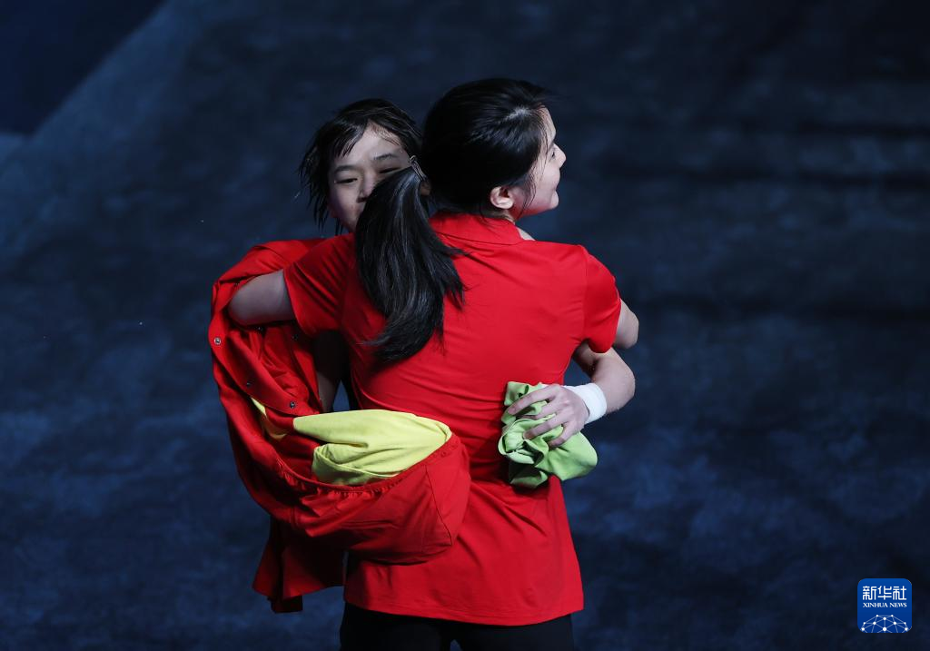2月5日,全红婵(左)夺冠后与教练陈若琳庆祝。新华社记者 雒圆 摄