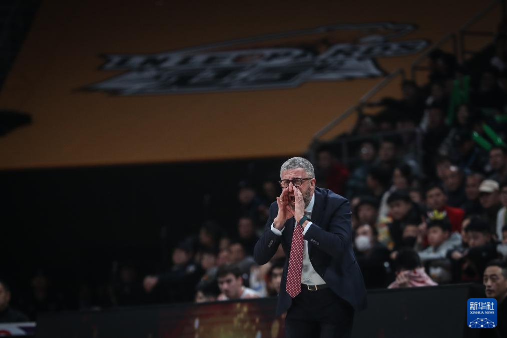 2月5日,北京北汽队主教练乔里欧在比赛中指导球员。新华社记者 潘昱龙 摄