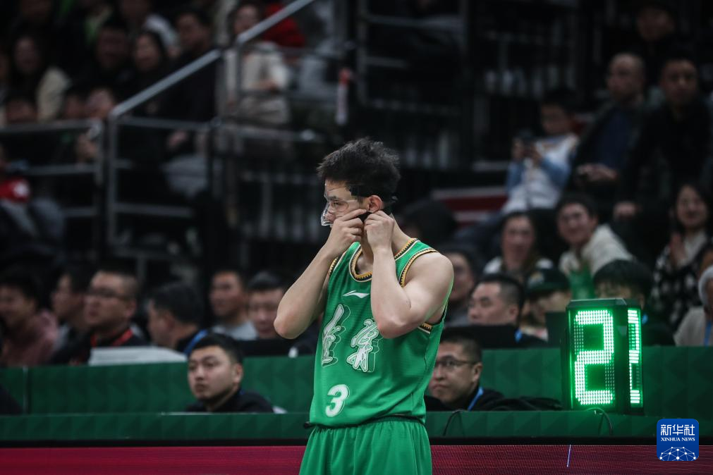 2月5日,辽宁本钢队球员赵继伟在上场前佩戴护具。新华社记者 潘昱龙 摄