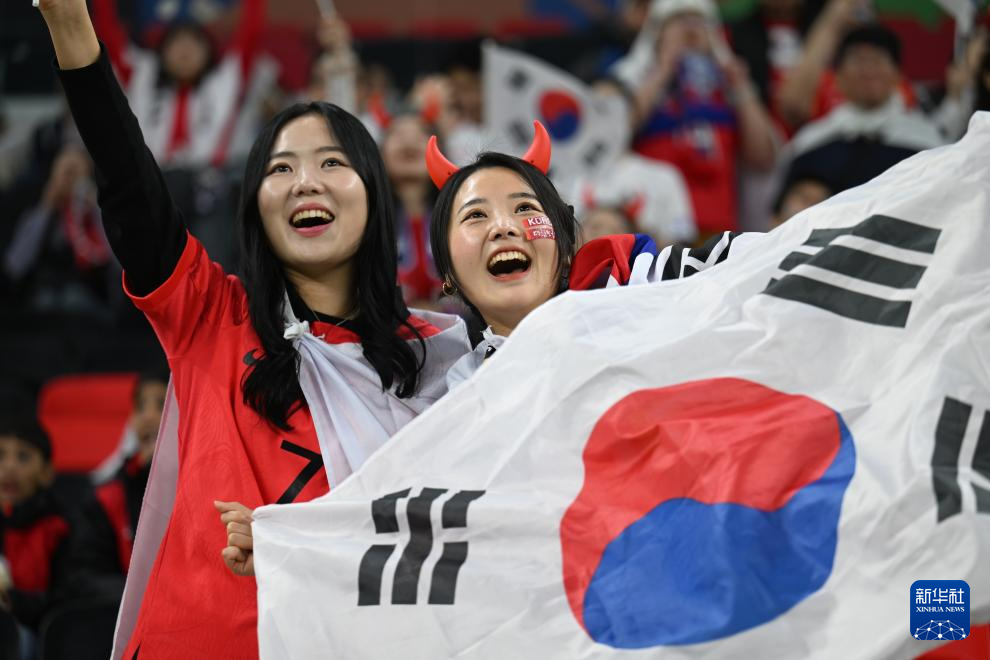 2月6日,韩国球迷在比赛前为球队加油助威。新华社记者 孙凡越 摄