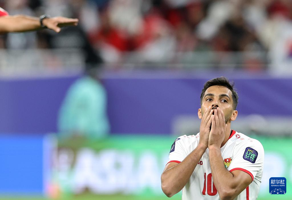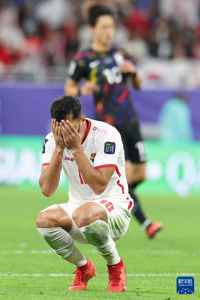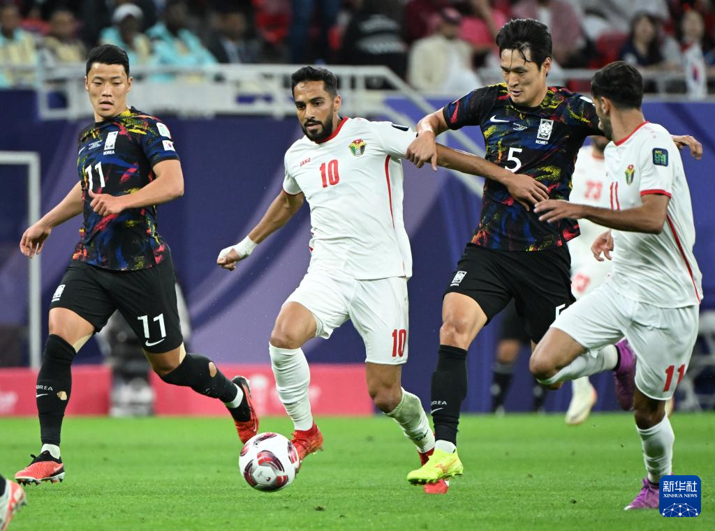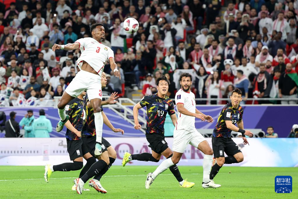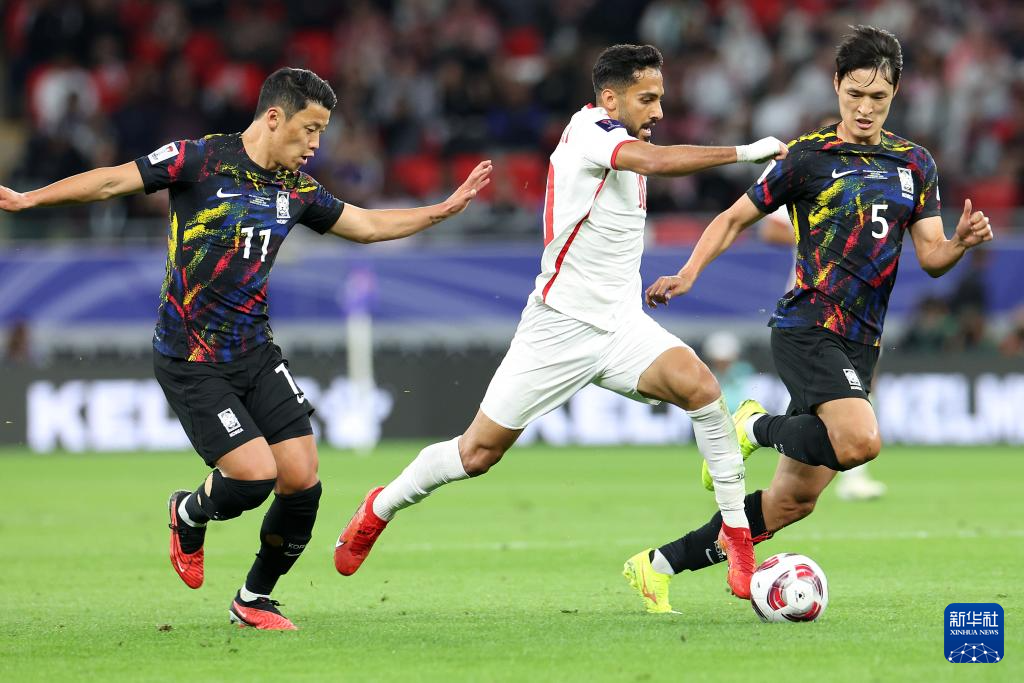 当日,在卡塔尔艾哈迈德·本·阿里体育场举行的男足亚洲杯半决赛中,约旦队对阵韩国队。